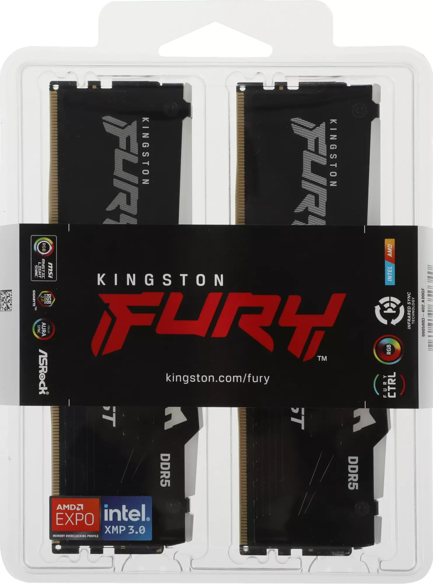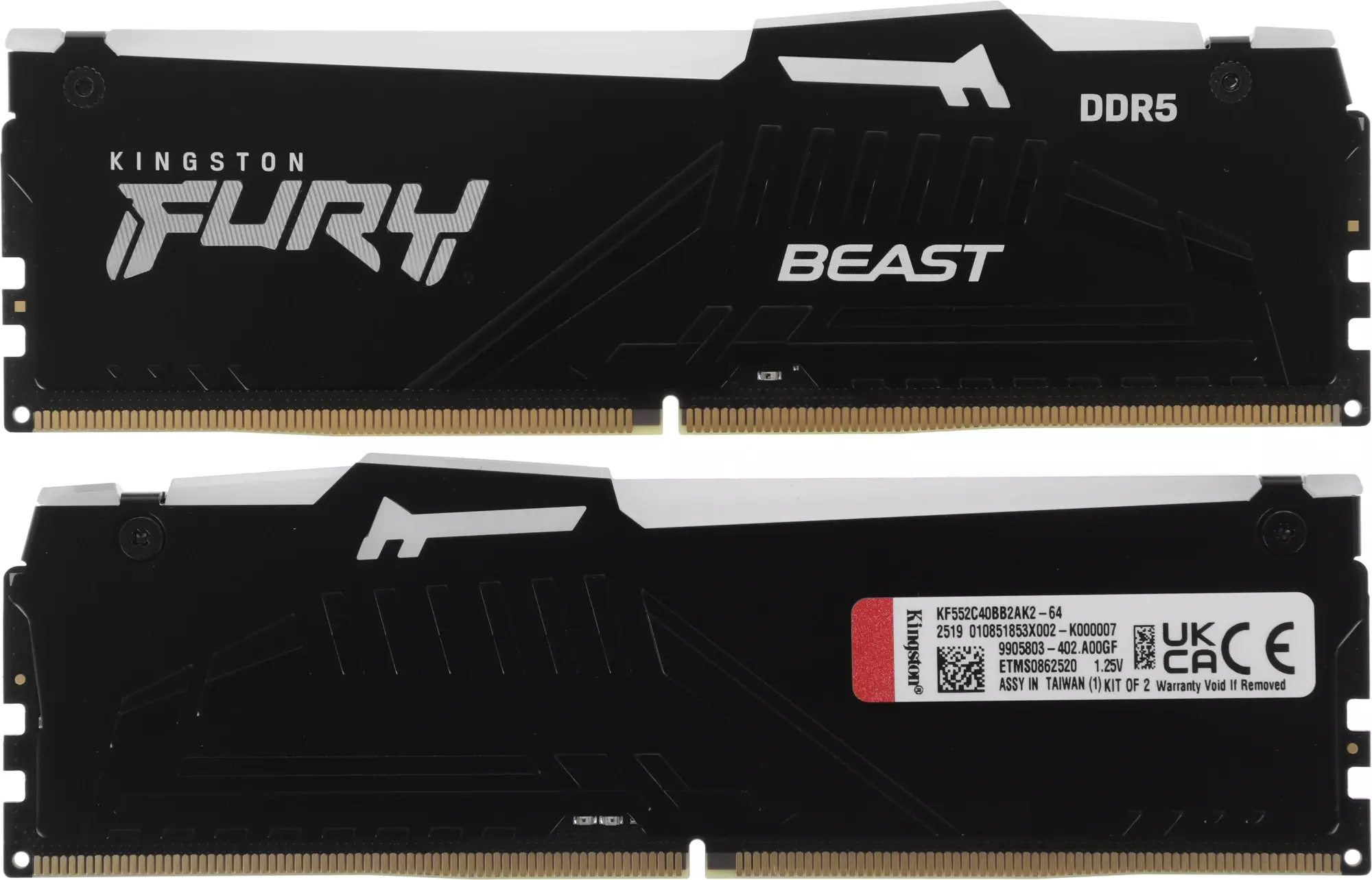 Оперативная память Kingston Fury Beast Black DDR5 - 2x 32GB, 5200 МГц, DIMM, CL40, RTL (kf552c40bb2ak2-64)