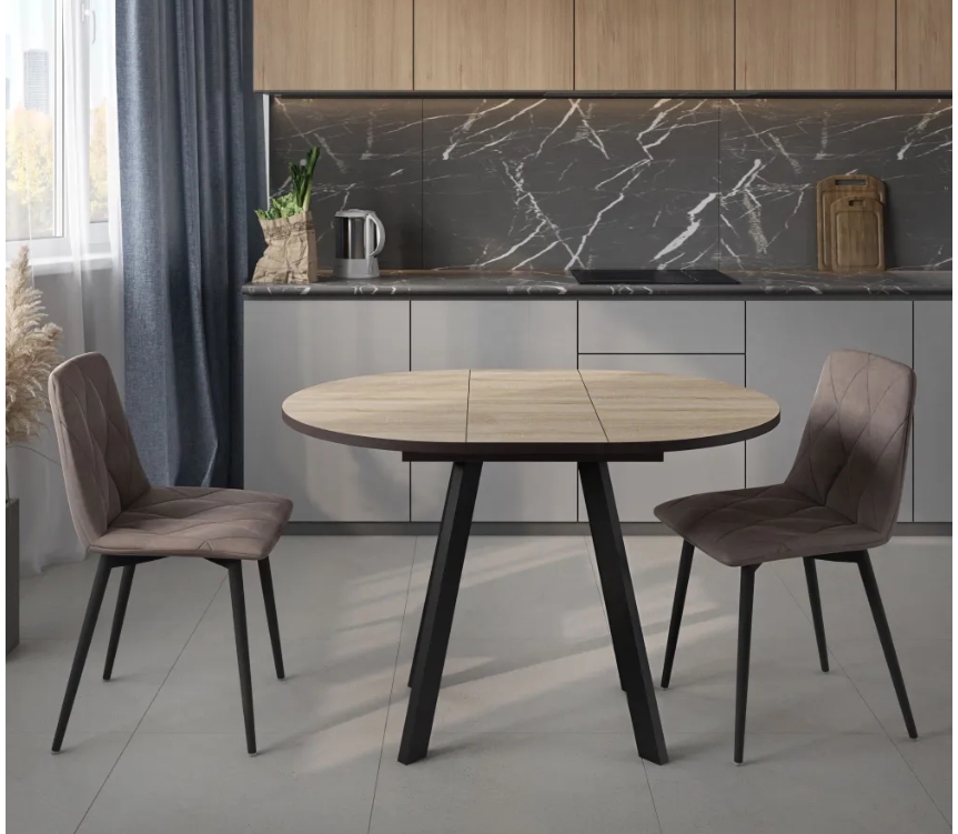 Многие мечтают о круглом столе для своей кухни. Но чтобы с удобством разместить за ним хотя бы шесть человек, потребуется стол диаметром полтора метра! При этом середина стола перестаёт быть рабочим пространством. Совместить преимущества прямоугольного и круглого стола может наш раздвижной стол ВИТА КР. В собранном виде он представляет собой идеальный круг с диаметром 90 см.