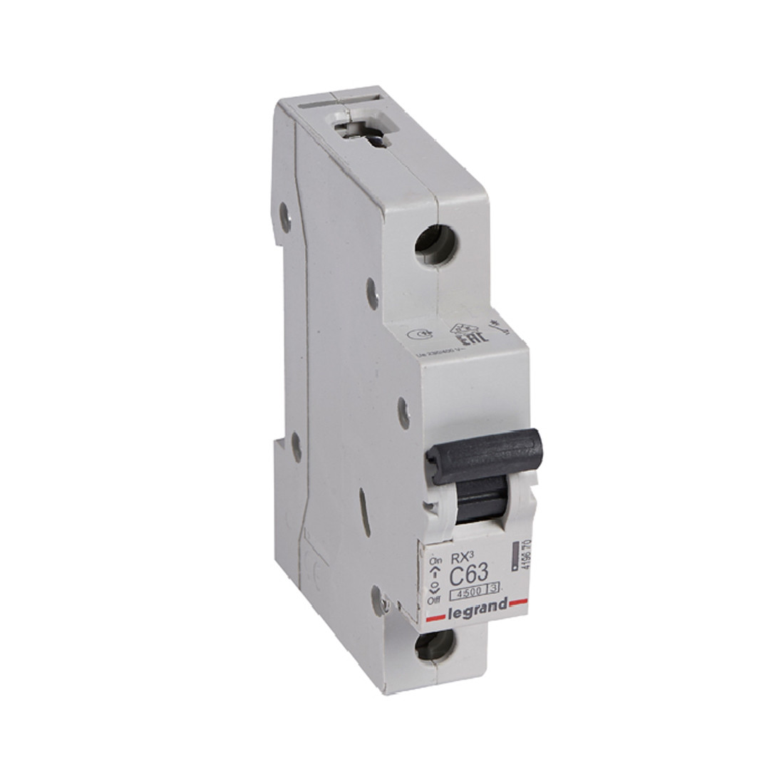 Однополюсный автоматический выключатель Legrand серии RX3 типа C. Номинальный ток - 63А. Отключающая способность - 4,5кА. Размер - 1 модуль DIN (17,5 мм). Автоматические выключатели этой серии производятся в Европе. У них увеличенная износостойкость (10000 электрических и 20000 механических операций). Группа Legrand гарантирует качество и соответствие заявленным характеристикам. Товары серии RX3 рекомендуются к применению в реконструируемых и вновь возводимых жилых домах, при ремонте. Допускаются к установке на различных объектах (жилые комплексы, небольшие офисы и торговые помещения).