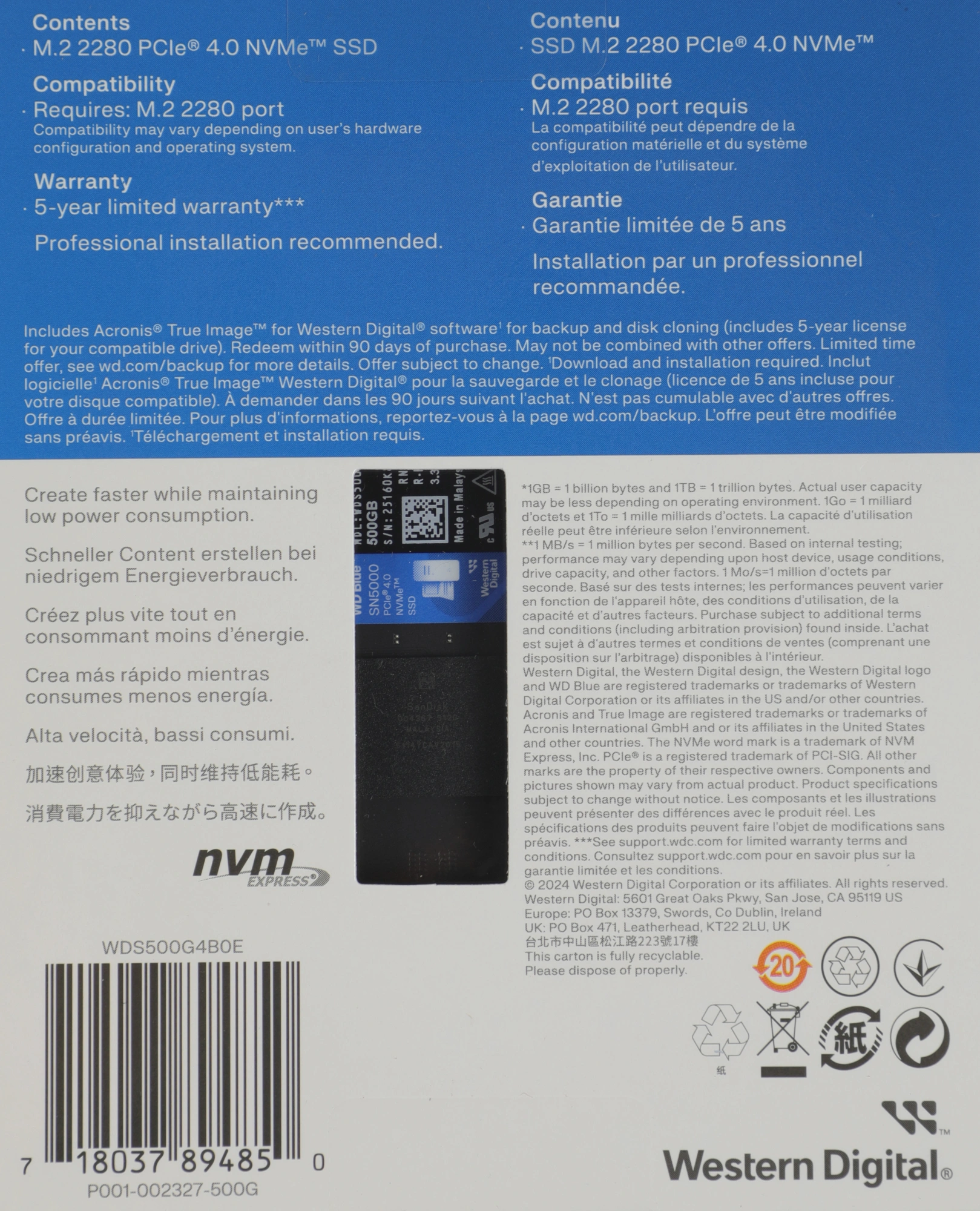 Накопитель SSD WD PCIe 4.0 x4 500GB WDS500G4B0E SN5000