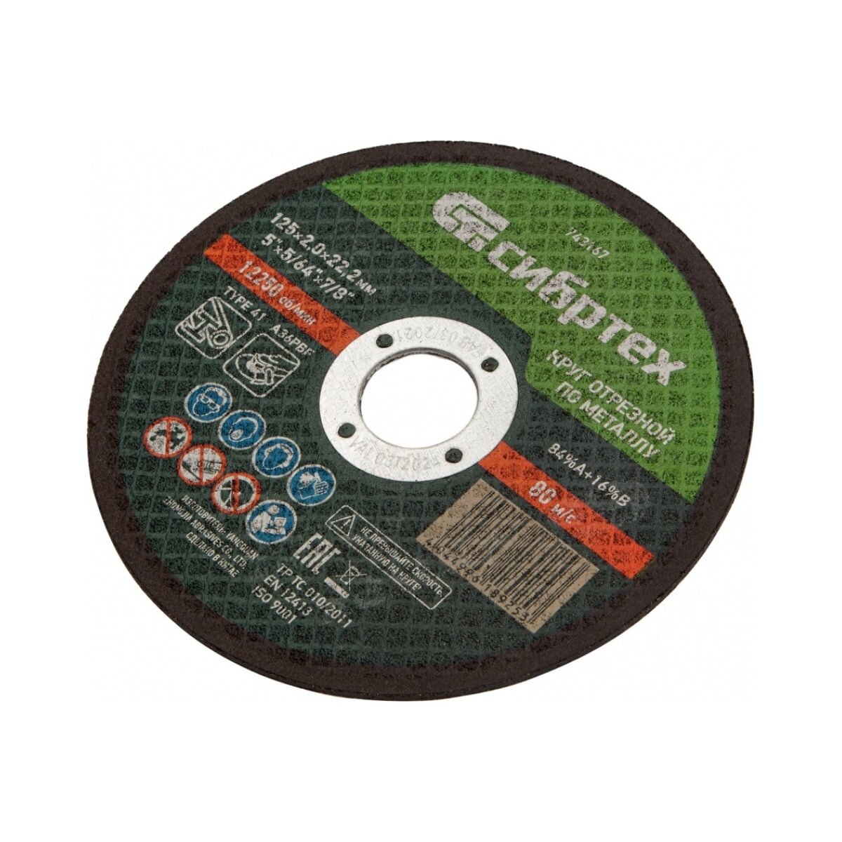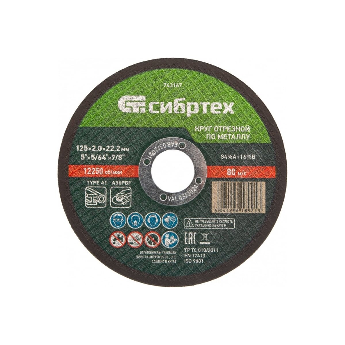 Круг отрезной Сибртех 743167 по металлу, 125х2,0х22,2 мм, 84%A+16%B