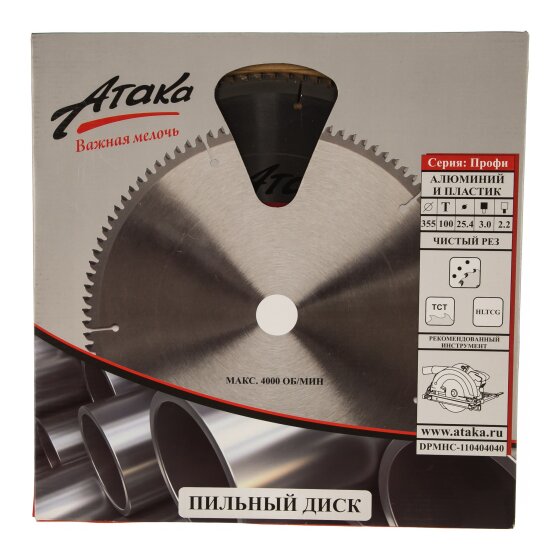 Диск пильный АТАКА 8077960 355*100T*25.4 алюминий пластик