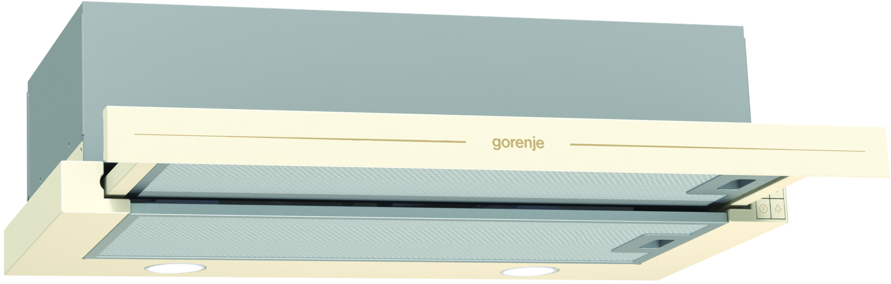 Встраиваемые вытяжки GORENJE/ BHP62CLI, Встраиваемая телескопическая вытяжка, Цвет вытяжки/короба: Слоновая кость, Отвод 435 м3/ч, механические переключатели, светодиодное освещение