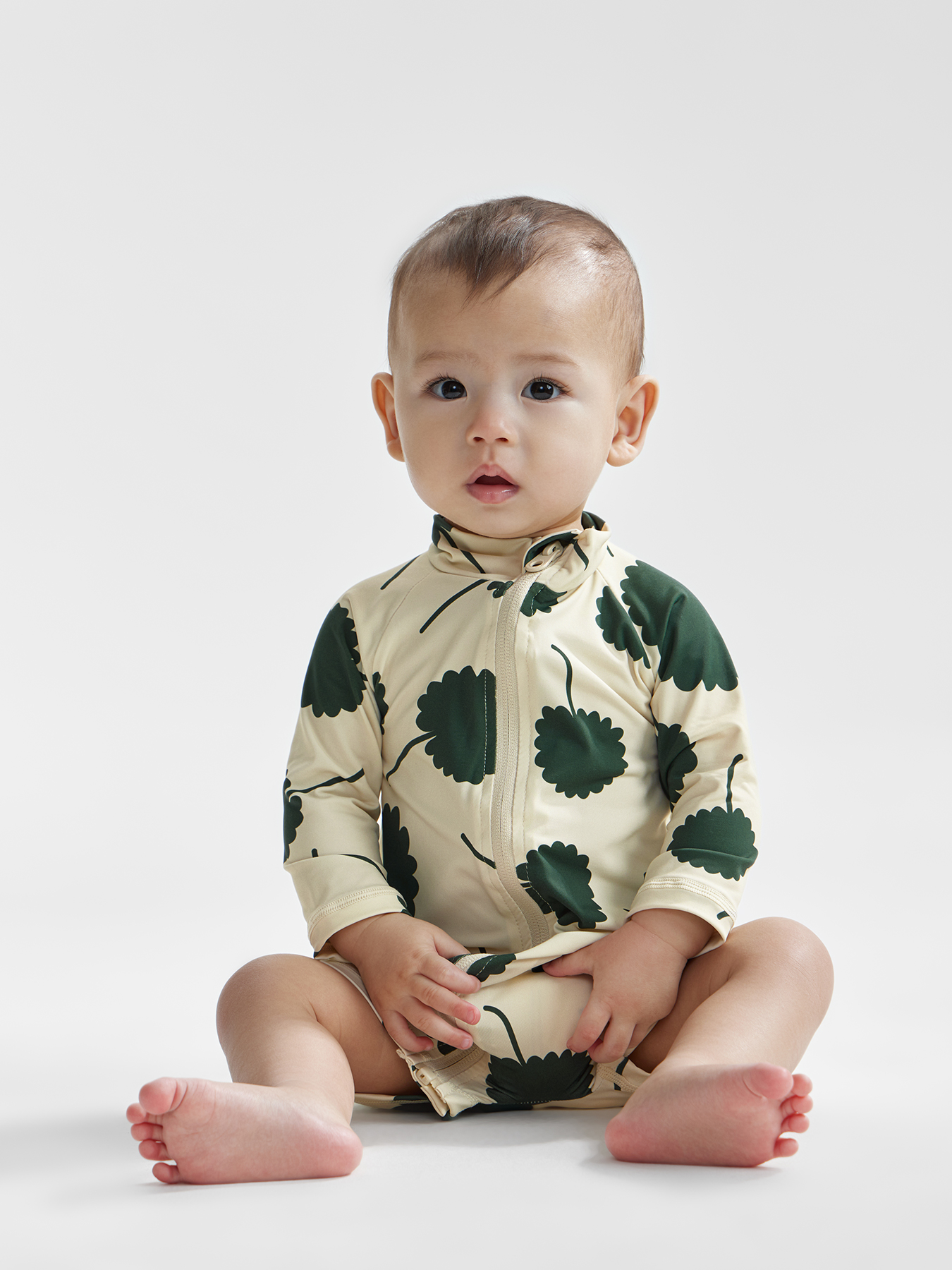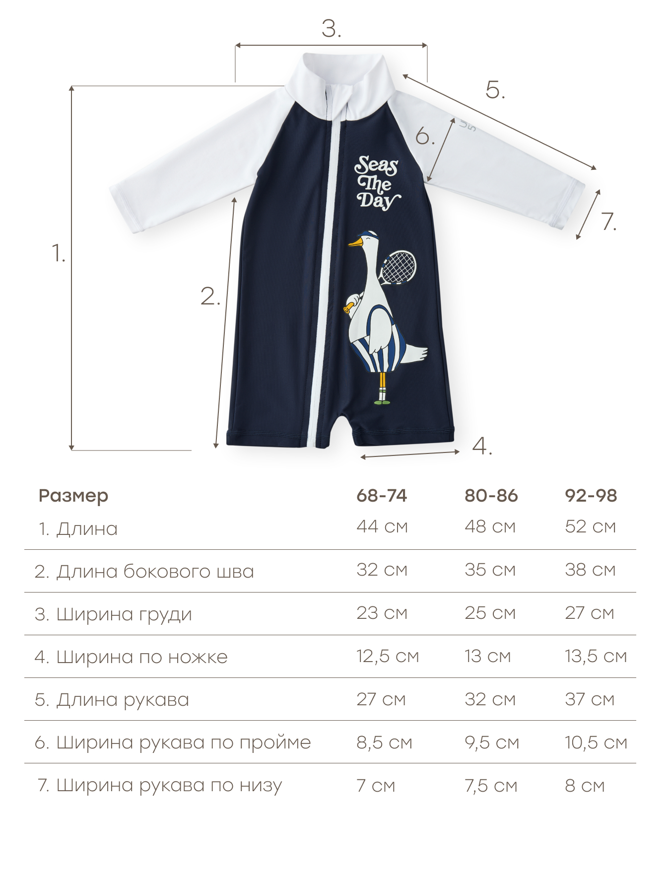 Купальный костюм с рукавами необходим для защиты детей от агрессивного солнца и ультрафиолета во время игр в воде и на берегу. Идеально подойдет, если переодеть малыша нужно быстро, застёгивается на молнию. Свободная посадка и отсутствие резинок на поясе понравится самым чувствительным детям. Размерная сетка предусматривает, что костюм будет впору пару сезонов. Костюм из мягкой ткани быстро сохнет, поэтому малышу будет комфортно играть в воде и на берегу. Ткань с фактором защиты от солнечного излучения UPF50+. Практичный материал удобен в уходе.