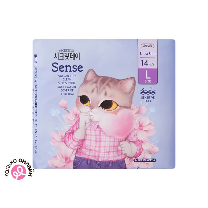 Женские гигиенические прокладки Secretday Sense — это идеальное сочетание комфорта, гигиены и надежности во время менструации. Специально разработанные для длинных ночей и активных дней, эти ультратонкие хлопковые удлиненные прокладки для месячных с крылышками обеспечивают защиту и уверенность в любой ситуации. Благодаря использованию натуральных материалов, в том числе хлопка, ночные корейские прокладки для месячных Secretday Sense обеспечивают ощущение свежести и комфорта на протяжении всего дня. Дышащая структура прокладок позволяет коже «дышать», предотвращая раздражение. Длина прокладки 29 см. Двойные барьерные линии, расположенные в передней и задней части прокладки, обеспечивают дополнительную защиту от протеканий. Рельефное тиснение верхнего слоя мгновенно впитывает жидкость и позволяет коже дышать.Каждая прокладка в индивидуальной упаковке, что обеспечивает удобное хранение в сумочке.Корейское качество, гигиена и современные технологии производства гарантируют высокую впитывающую способность и надежную защиту от протеканий. Длинные прокладки с крылышками надежно фиксируются на белье, обеспечивая дополнительную защиту и комфорт. Прокладки могут использоваться и как ночные и как дневные, избавляя от необходимости покупки множества видов прокладок.Благодаря натуральному составу без ароматизаторов и отдушек, а также уникальной структуре, мягкой поверхности из хлопка и надежному клеевому слою, прокладки с киской Secretday Sense помогут девушкам, подросткам, беременным и кормящим женщинам чувствовать себя комфортно и защищенно в критические дни.Набор корейских прокладок Secretday Sense — это идеальный выбор для красоты и тех, кто ценит качество, комфорт и надежность. Хлопковые прокладки с кошечкой подойдут для использования в любой день месячного цикла, обеспечивая защиту и уверенность. В ассортименте бренда также представлены ежедневные прокладки, обеспечивающие надежную защиту от протеканий, которые разработаны с использованием современных технологий. Специальные впитывающие слои ежедневок быстро поглощают влагу и удерживают ее внутри, что позволит Вам чувствовать себя комфортно в течение всего дня. Попробуйте Secret Day прокладки и ежедневки сами и убедитесь в высоком качестве корейского продукта!Меры предосторожности: хранить в сухом, недоступном для детей месте, беречь от влаги и огня, не смывать в унитаз.