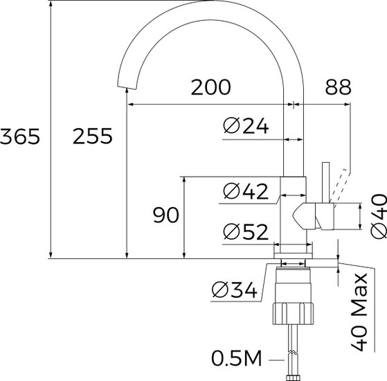 • Длина (вылет) излива 200 мм