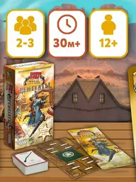 Бэнг! Дуэль – это дуэльная карточная настольная игра в известной серии вестернов Бэнг. Да, теперь это игра лишь для двух игроков, но зато со свежей механикой и с новыми правилами. Без изменений остались: сеттинг, общий стиль оформления да некоторые знакомые и самые любимые карты из предыдущих частей. Сама же игра блистает перед нами совершенно новыми красками. В этой версии вы сможете примерить на себя роль шерифа или главаря банды и собрать команду из самых прославленных стрелков – такие имена как Джанго или Буффало Билл точно порадуют любителей вестернов. Игровая сцена представляет собой дуэль между двумя группами – представителей закона и бандитов. Самая маленькая возможная группа может состоять из четырёх членов, но непосредственно в бою с вашей стороны находятся только два – один атакующий, а второй – прикрывающий его напарник. В ходе игры чего только не происходит: палят во все стороны кольты и карабины, грохочет динамит, сорванные пулями шляпы мелькают тут и там, от укрытий из бочек отлетают куски дерева. А уж если дело до гатлинга или нападения индейцев дойдёт…