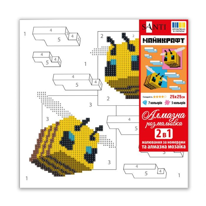 - Модель Майнкрафт Бджілки 25х25 см з алмазною мозаїкою