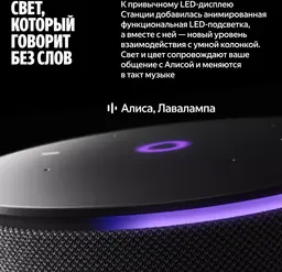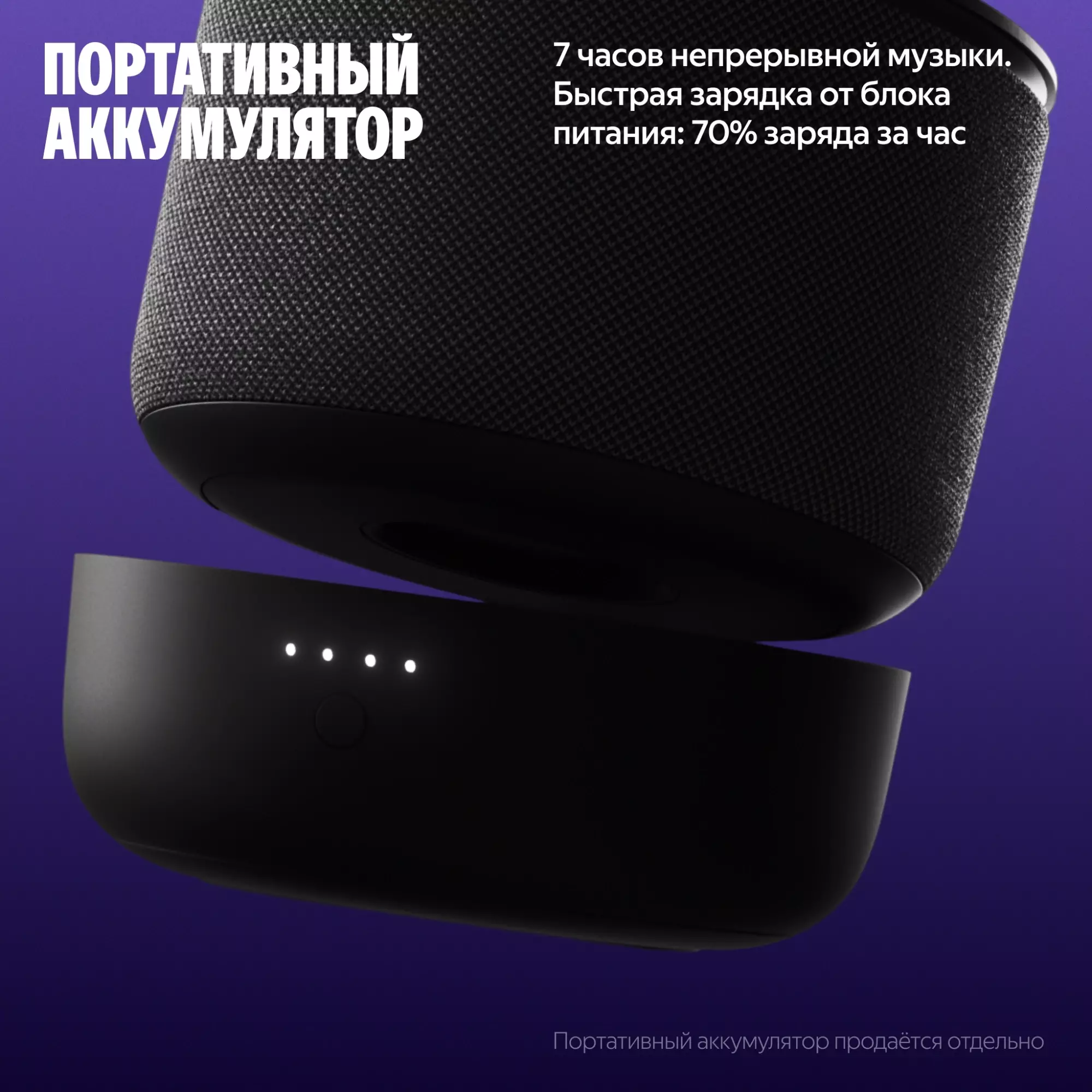 • Особенности Совместимость с внешним аккумулятором YNDX-00650BLK. На умную колонку можно звонить из приложений Дом с Алисой или с другой Станции.