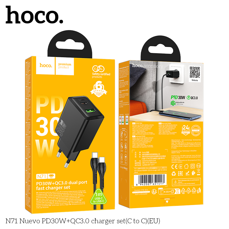 СЗУ HOCO N71 Nuevo PD30W+QC3.0 C to C черный