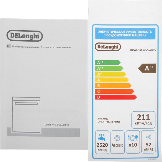 • Расход электроэнергии за цикл 0.739 кВт·ч