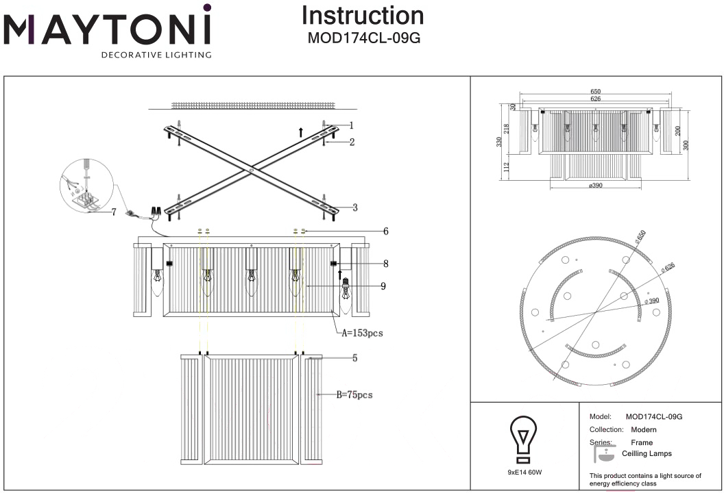 Люстра/потолочный светильник Maytoni Frame MOD174CL-09G