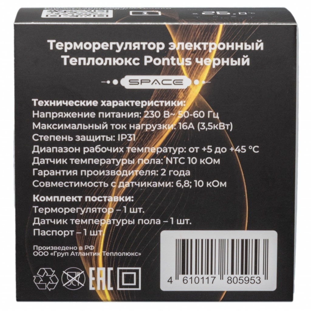Терморегулятор для теплого пола Теплолюкс Pontus Spase (черный)