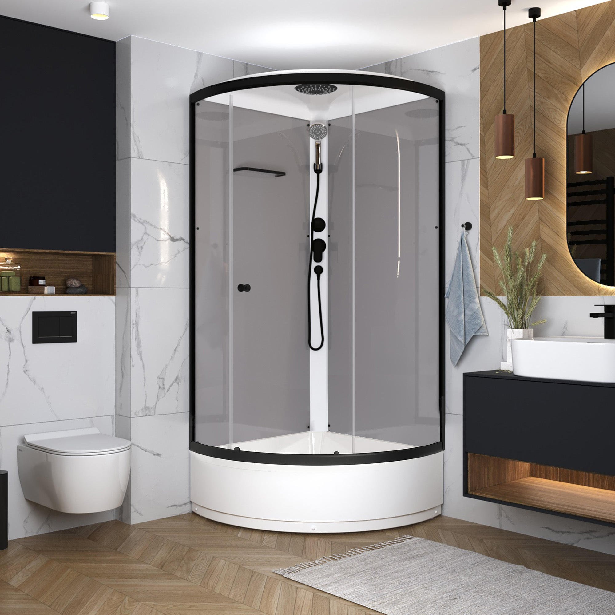 Душевая кабина Domani-Spa Simple 99 Mid 90x90 / DS01Sm99MGrCl00.Gt-V1.2-Black