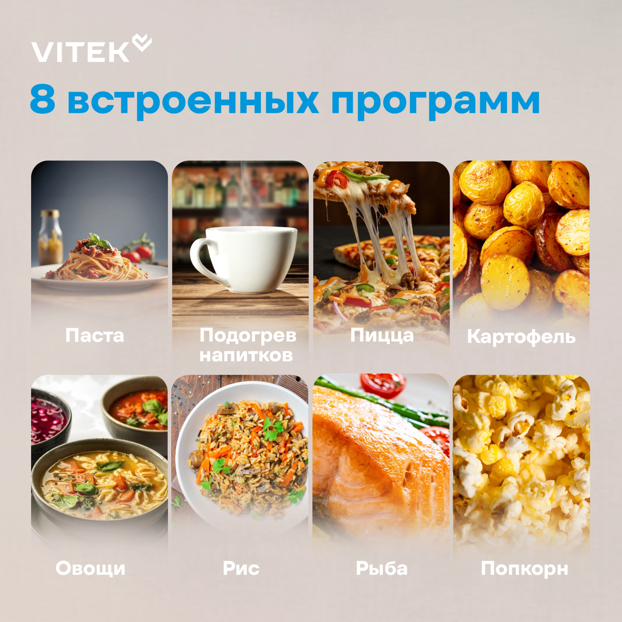 • Описание Картофель Паста Пицца Попкорн Овощи Подогрев напитков Мясо Рыба