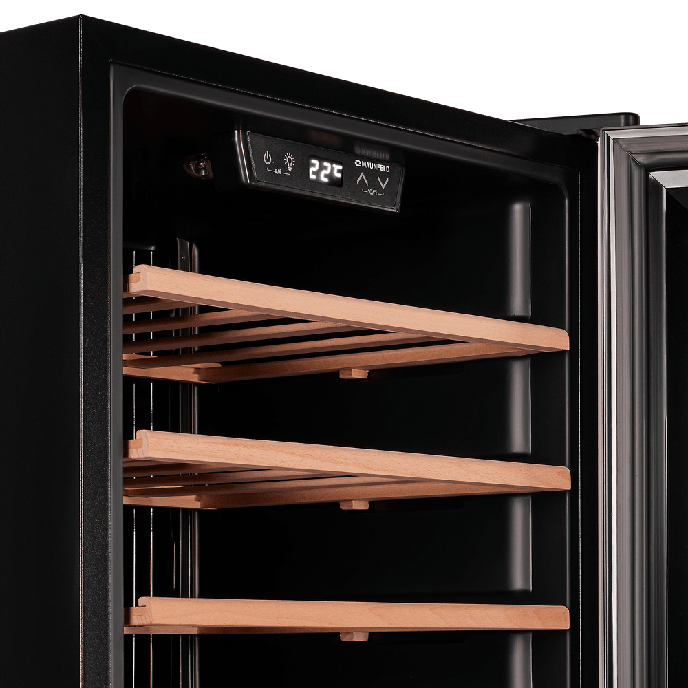 Винный холодильник Maunfeld MFWC-85SB34 имеет одну температурную зону, в которой можно разместить бутылки и единовременно выставить только одну комбинацию настроек. Он устанавливается отдельно, что удобно, если у вас есть специальное помещение — кладовая, погреб и т.д. Благодаря компактным размерам данная модель — отличный выбор для офиса, гостиничного номера. Количество бутылок, которое можно разместить с учетом полной комплектации и из расчета объема бутылки 0,75 л, — 34 шт.