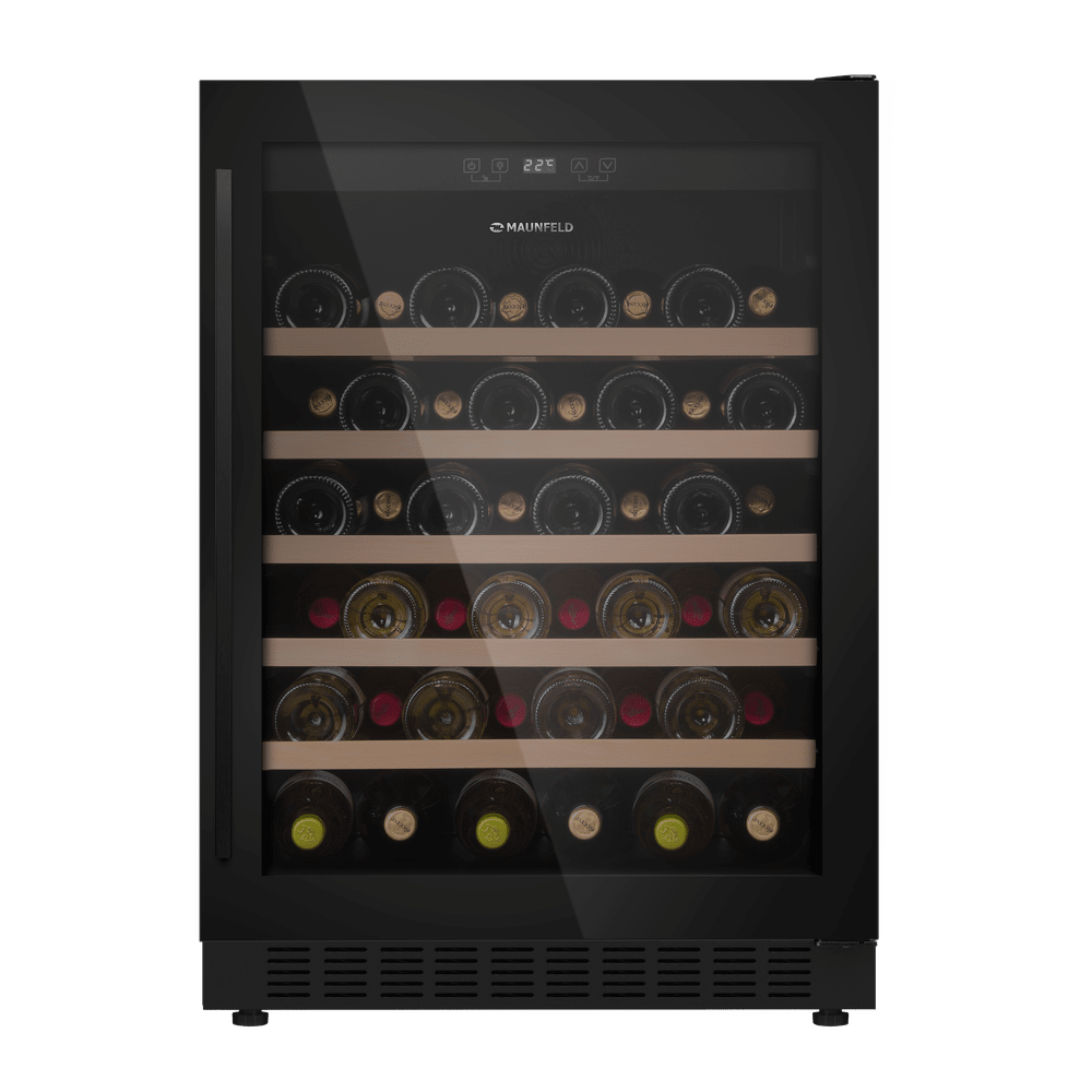 Винный холодильник Maunfeld MBWC-135S54 имеет одну температурную зону, в которой можно разместить бутылки и единовременно выставить только одну комбинацию настроек. Он встраивается в нишу, что удобно, если у вас ограничен метраж помещения. Благодаря компактным размерам данная модель — отличный выбор для офиса, гостиничного номера. Количество бутылок, которое можно разместить с учетом полной комплектации и из расчета объема бутылки 0,75 л, — 54 шт.