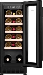Стеклянная дверь — дополнительный изящный штрих к общему дизайну модели. Специальное покрытие защищает вино от влияния ультрафиолетовых лучей, которые проникают, если шкаф находится в солнечной комнате. Цвет корпуса — черный.
