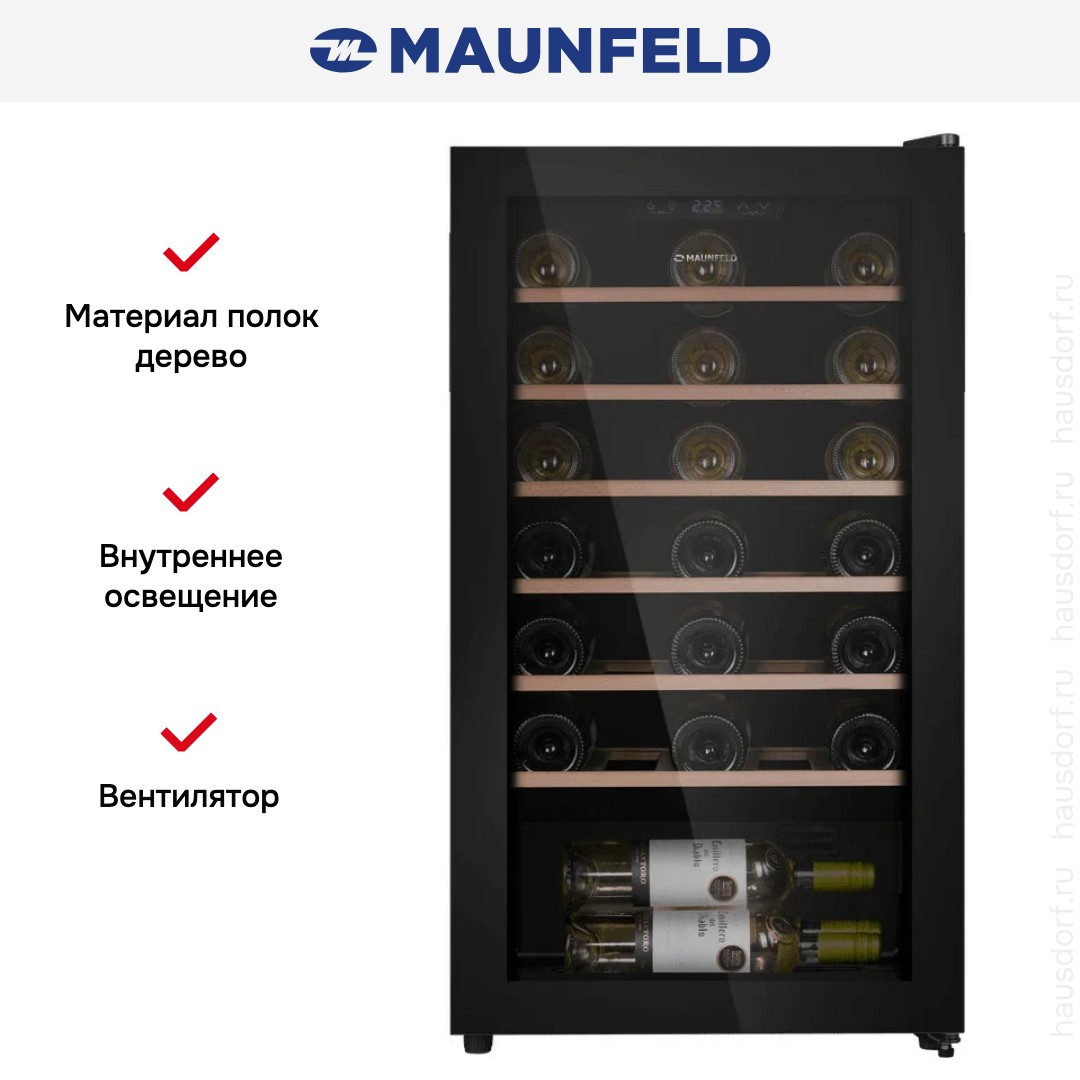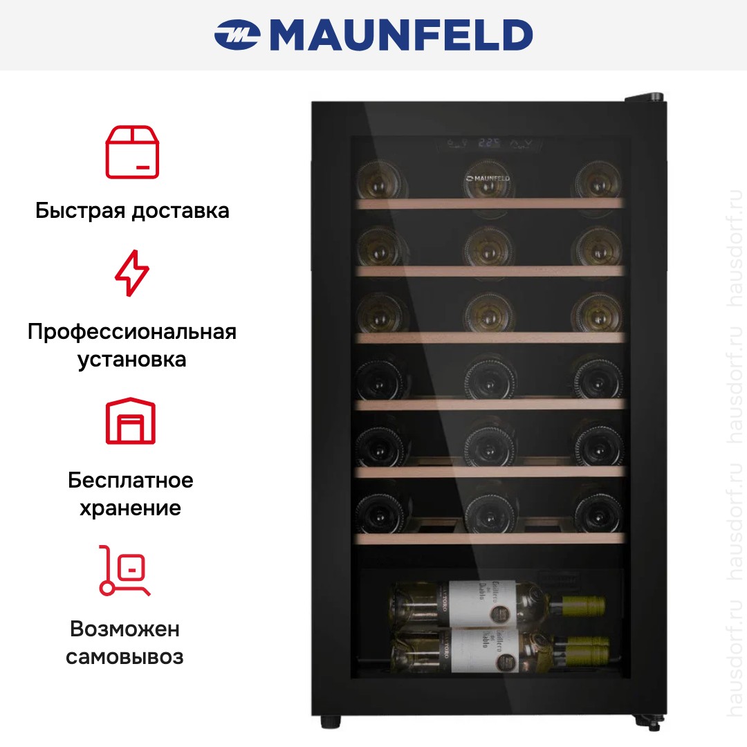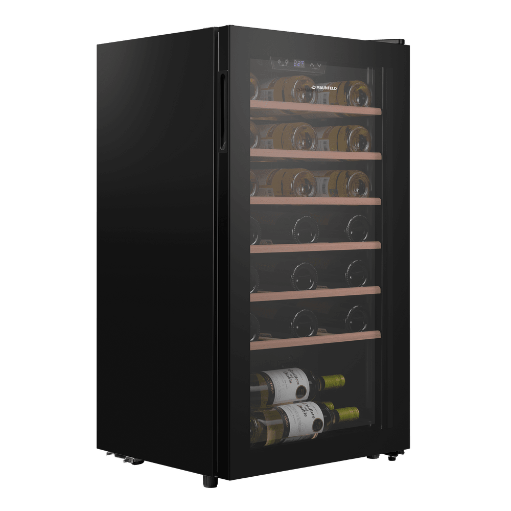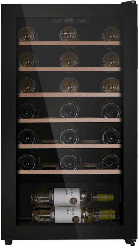 Винный холодильник Maunfeld MFWC-85S34 имеет одну температурную зону, в которой можно разместить бутылки и единовременно выставить только одну комбинацию настроек. Он устанавливается отдельно, что удобно, если у вас есть специальное помещение — кладовая, погреб и т.д. Благодаря компактным размерам данная модель — отличный выбор для офиса, гостиничного номера. Количество бутылок, которое можно разместить с учетом полной комплектации и из расчета объема бутылки 0,75 л, — 34 шт.
