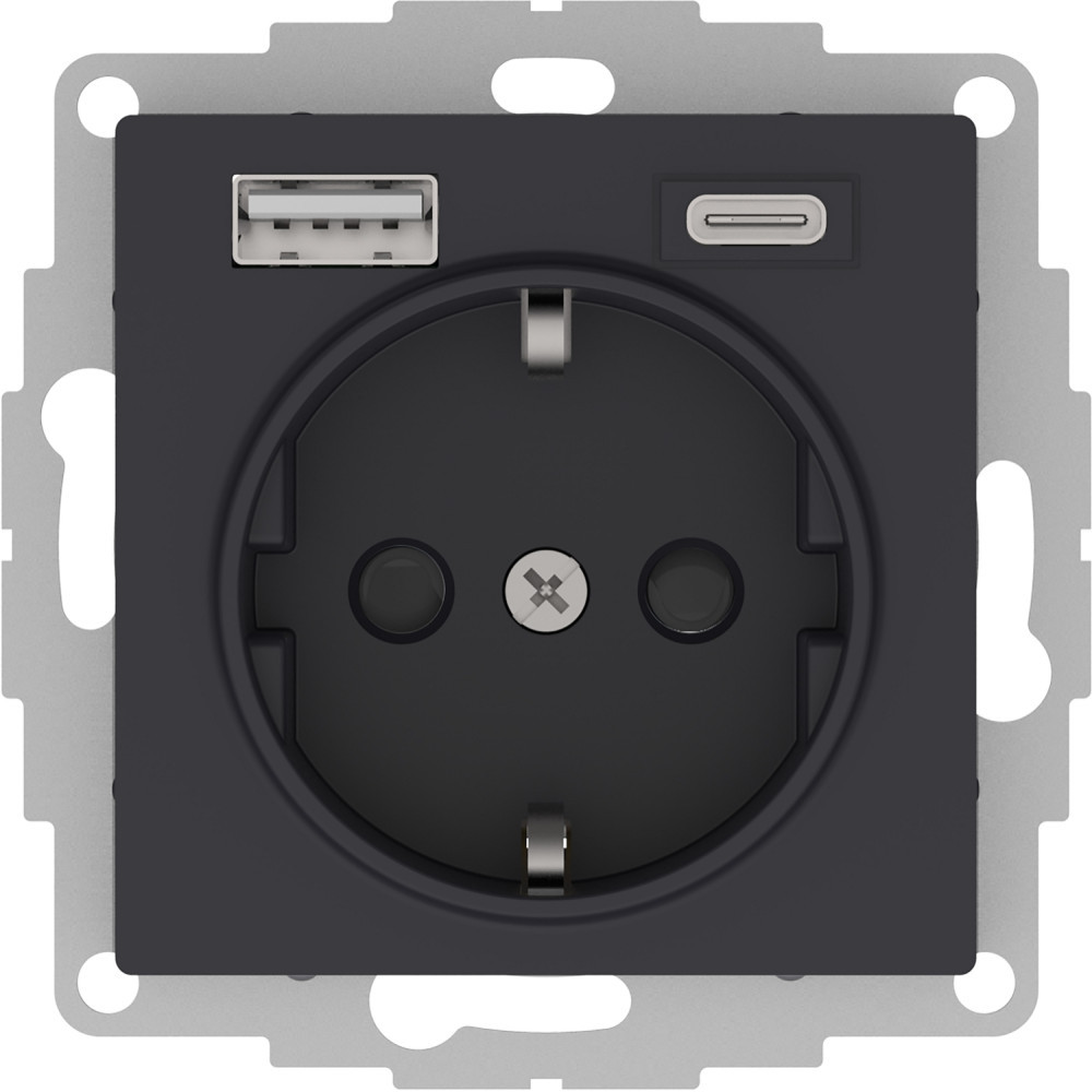 ATLASDESIGN РОЗЕТКА 16А c 2 USB A+С, 5В/2,4А/3,0А, 2х5В/1,5А, механизм, КАРБОН