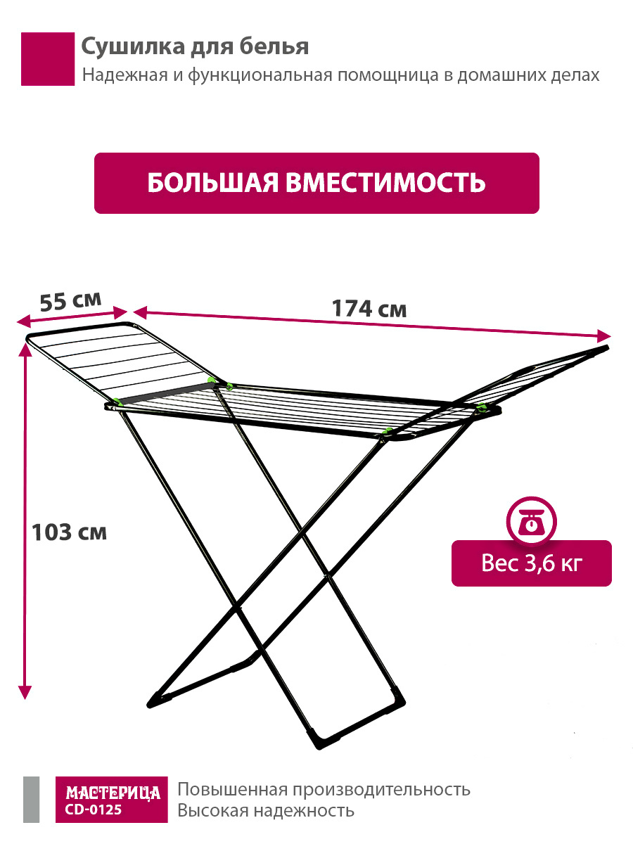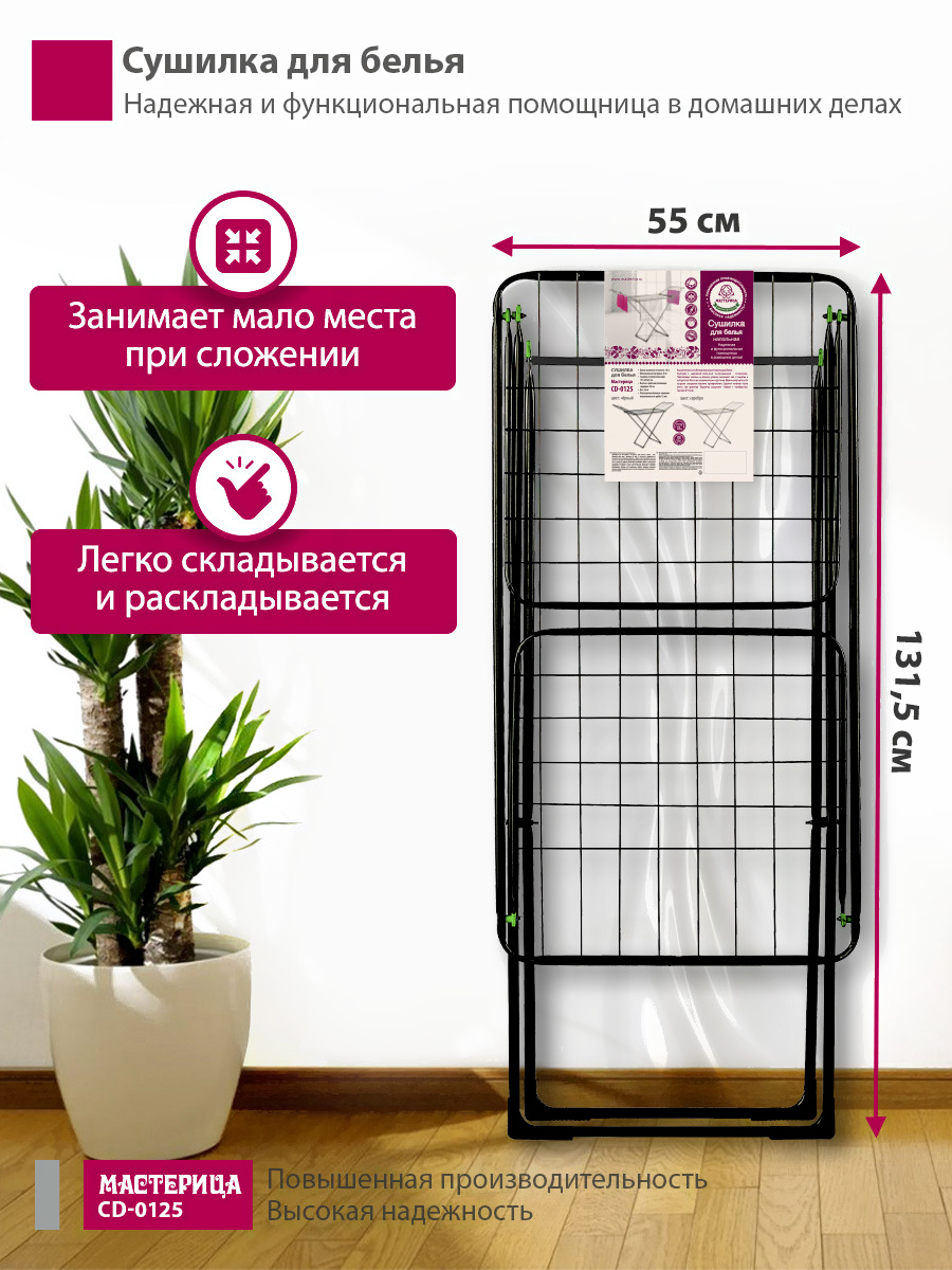 • Размеры в сложенном виде (Д×Ш×В) 131.5×55×5 см