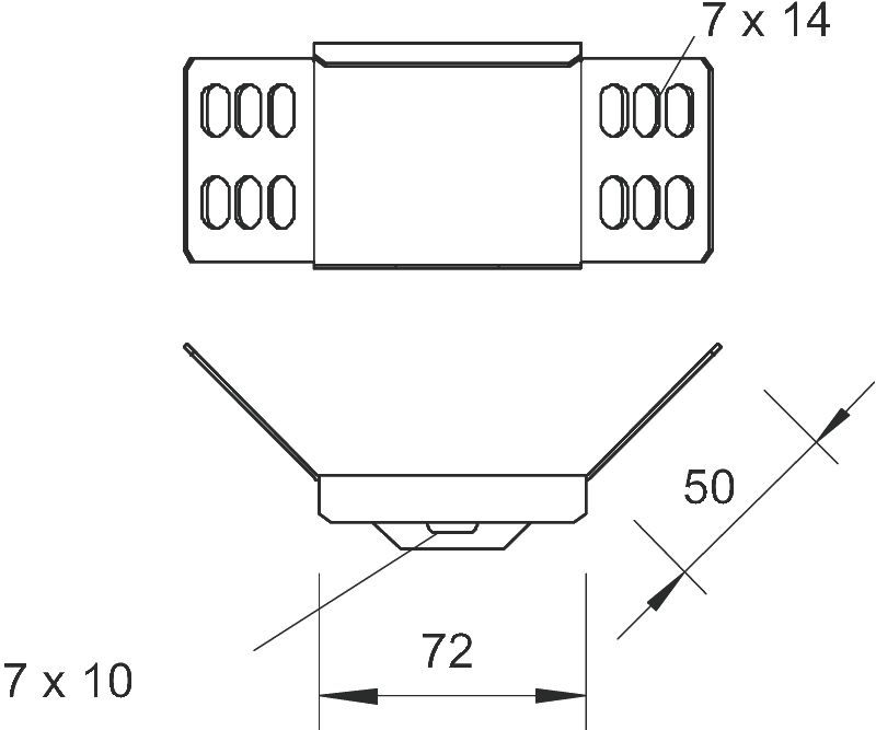 Угловой соединитель для кабельных лотков, высота боковой стороны которых составляет 60 мм.