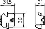 Фиксатор для безболтового крепления разделительных полочек в кабельных лотках RKSM, MKS и SKS.