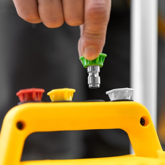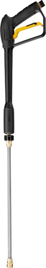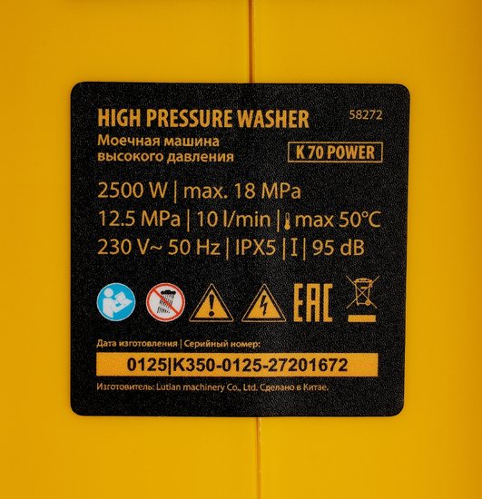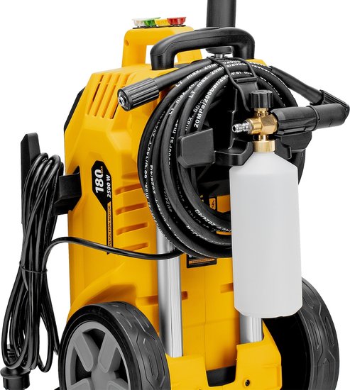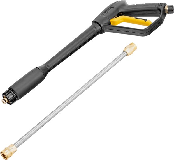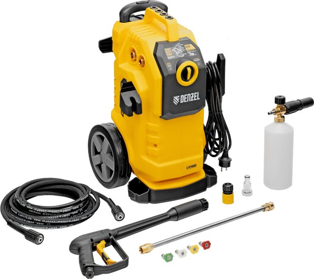 Комплектация- Мойка высокого давления;- Шланг высокого давления;- Пистолет моечный;- Насадка-удлинитель;- Форсунки 4 шт;- Пеногенератор с бачком для моющего средства -1 шт;- Входной штуцер с фильтром;- Быстросъемный коннектор шланга;- Игла для прочистки сопла.