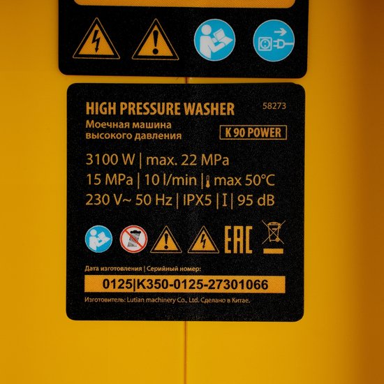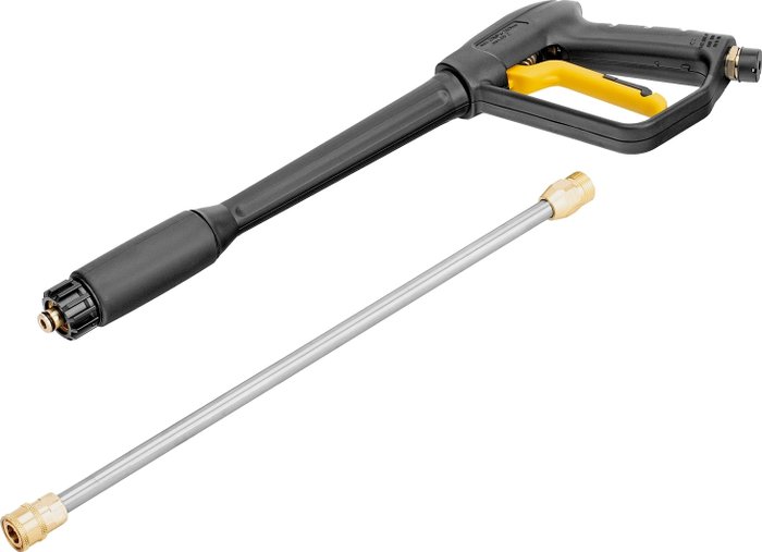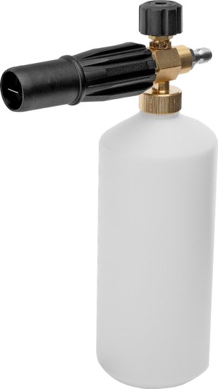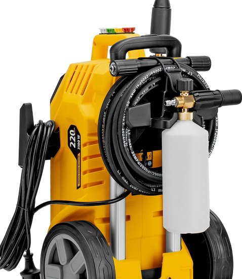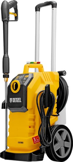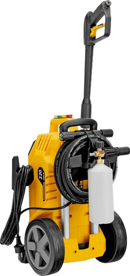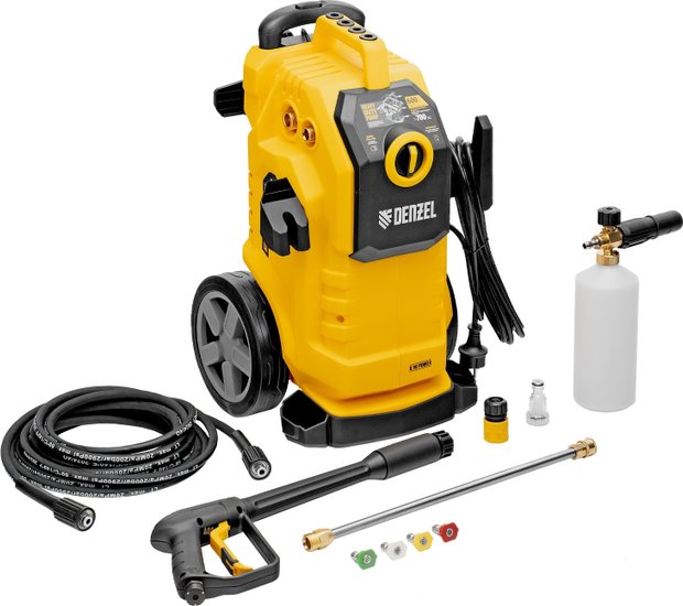Комплектация- Мойка высокого давления;- Шланг высокого давления;- Пистолет моечный;- Насадка-удлинитель;- Форсунки 4 шт;- Пеногенератор с бачком для моющего средства;- Входной штуцер с фильтром;- Быстросъемный коннектор шланга;- Игла для прочистки сопла.
