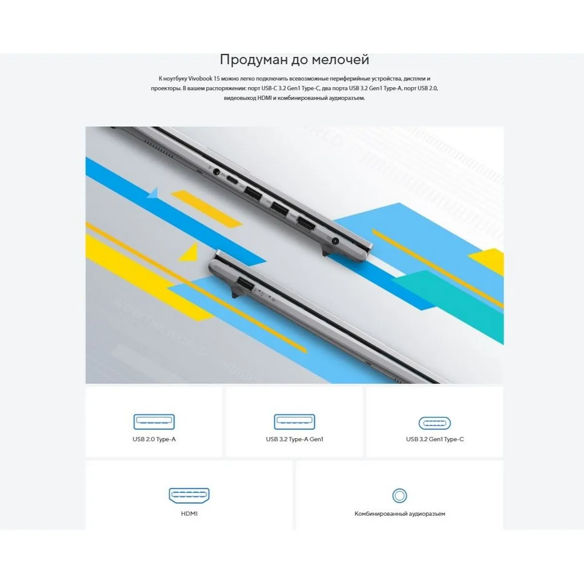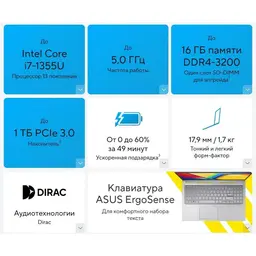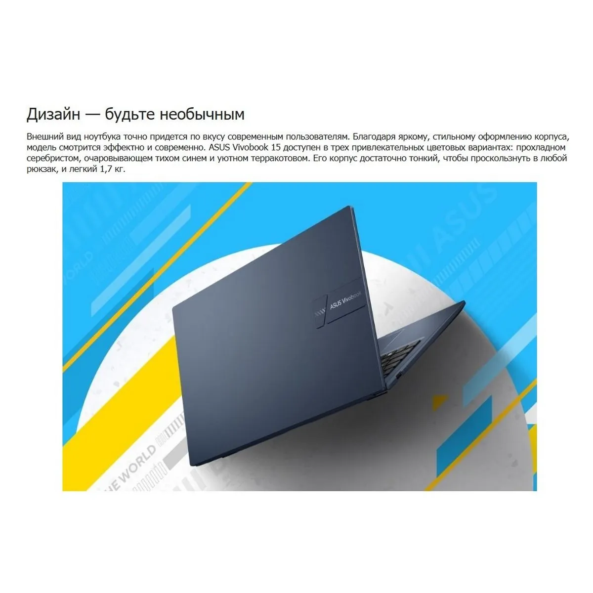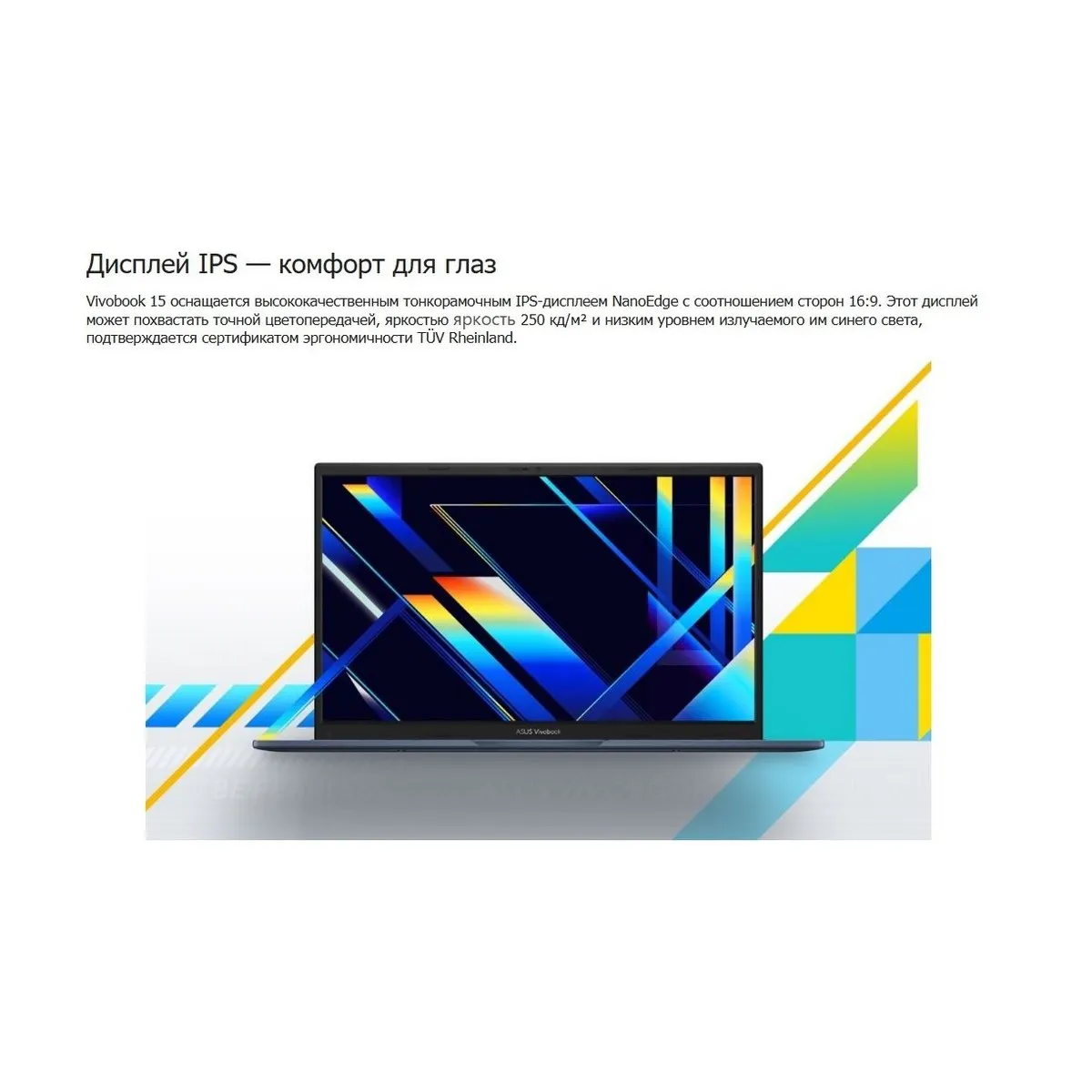 Описание товара Ноутбук ASUS Vivobook 15 X1504VA-BQ312 Intel Core i3-1315U/8Gb/256Gb/15.6"/IPS /FHD/60Hz/NoOS/Blue(90NB10J1-M01HX0)
