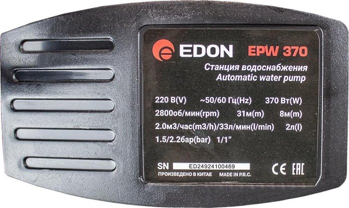 ❗️Текст описания составлен при помощи искусственного интеллекта.✅ Насосная станция Edon EPW 370 — это надежное решение для водоснабжения вашего дома или дачи. С мощностью 370 Вт и производительностью 2 м³/час, она обеспечит вас необходимым объемом воды для различных нужд. ✅ Установка данной насосной станции осуществляется поверхностным способом, что делает ее удобной для использования в условиях ограниченного пространства. Глубина до зеркала воды составляет 8 метров, что позволяет эффективно забирать воду из колодцев и других источников.✅ Станция работает при напряжении 220 В и обеспечивает давление до 5 бар, что гарантирует стабильную подачу воды даже на значительные расстояния. Напор в 31 метр позволяет использовать насос для полива садов, огородов и других хозяйственных нужд.⚠️ Обратите внимание на материал корпуса — чугун, который обеспечивает долговечность и надежность устройства. С весом всего 9 кг и длиной кабеля 1 м, насосная станция легко устанавливается и перемещается.✅ Edon EPW 370 идеально подходит для тех, кто ищет качественное и эффективное решение для водоснабжения. С ее помощью вы сможете обеспечить бесперебойную подачу чистой воды в вашем доме или на даче.❗️Текст описания составлен при помощи искусственного интеллекта.✅ Насосная станция Edon EPW 370 — это надежное решение для водоснабжения вашего дома или дачи. С мощностью 370 Вт и производительностью 2 м³/час, она обеспечит вас необходимым объемом воды для различных нужд. ✅ Установка данной насосной станции осуществляется поверхностным способом, что делает ее удобной для использования в условиях ограниченного пространства. Глубина до зеркала воды составляет 8 метров, что позволяет эффективно забирать воду из колодцев и других источников.✅ Станция работает при напряжении 220 В и обеспечивает давление до 5 бар, что гарантирует стабильную подачу воды даже на значительные расстояния. Напор в 31 метр позволяет использовать насос для полива садов, огородов и других хозяйственных нужд.⚠️ Обратите внимание на материал корпуса — чугун, который обеспечивает долговечность и надежность устройства. С весом всего 9 кг и длиной кабеля 1 м, насосная станция легко устанавливается и перемещается.✅ Edon EPW 370 идеально подходит для тех, кто ищет качественное и эффективное решение для водоснабжения. С ее помощью вы сможете обеспечить бесперебойную подачу чистой воды в вашем доме или на даче.