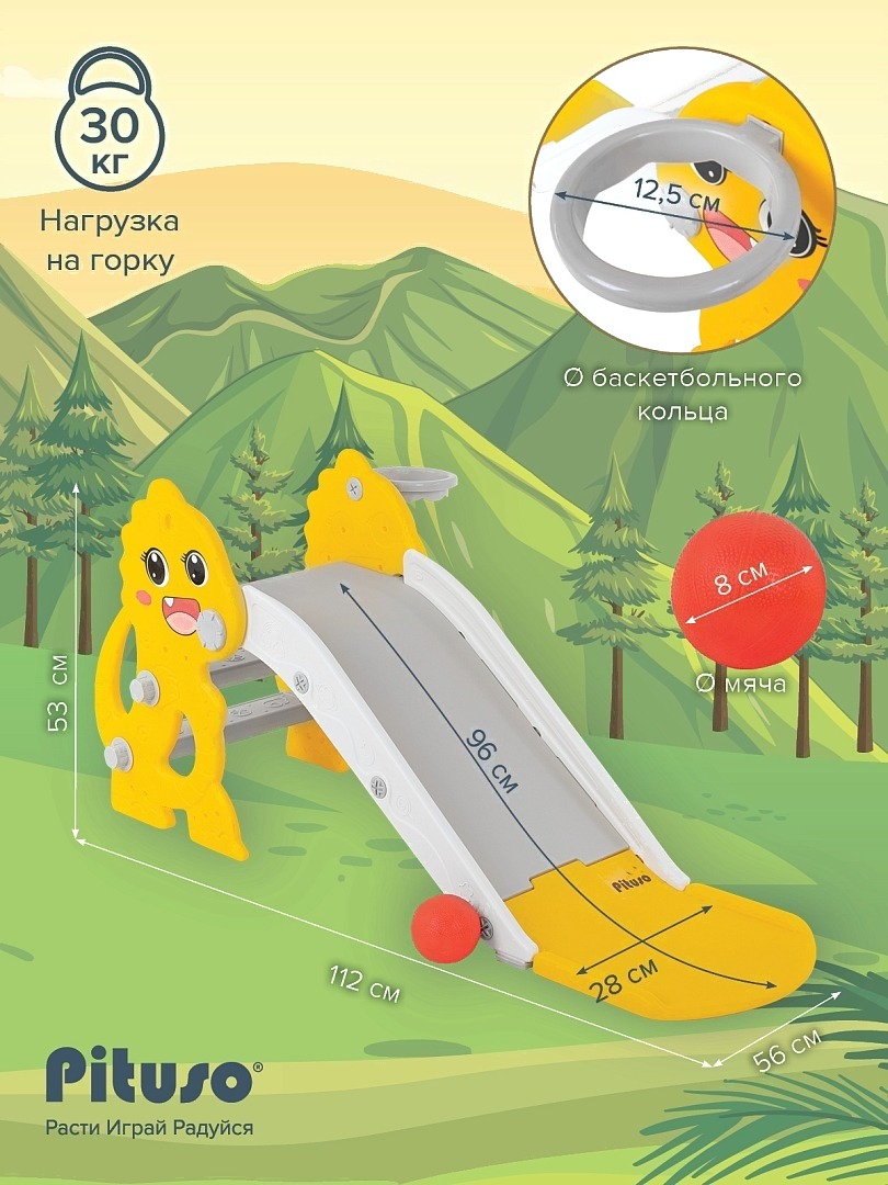 • Элементы в комплекте баскетбольная корзина, горка, лестница, мяч