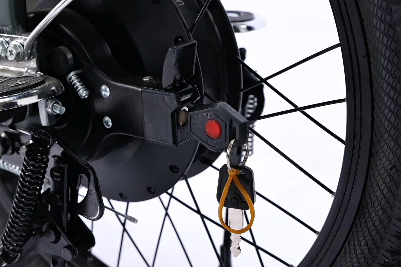 • Дополнительные элементы защита цепи (частичная), звуковой сигнал, зеркало, корзинка, подножка, стоп-габарит, фонарь