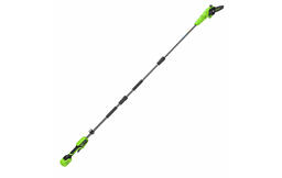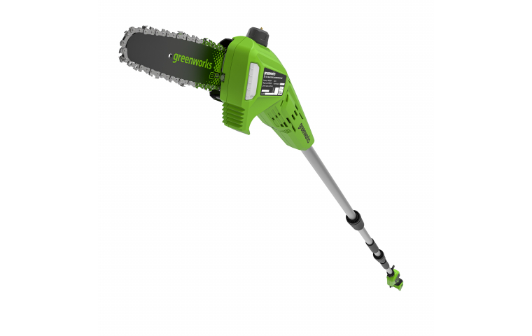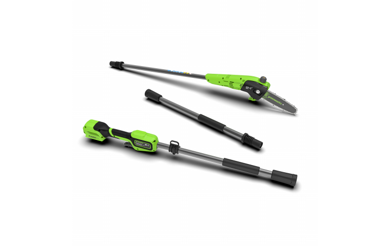 Высоторез аккумуляторный Greenworks G24PS201 — высоторез из серии 24В для спиливания веток на высоте. Длина шины составляет 20 см. Оснащен автоматической смазкой цепи, составной штангой из 3х секций.