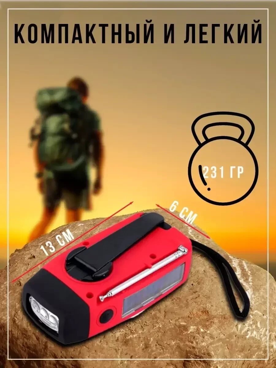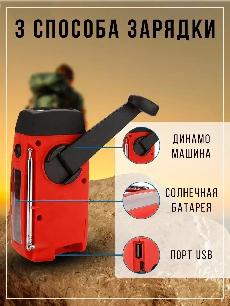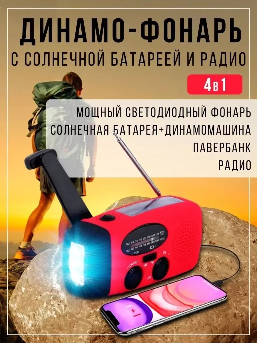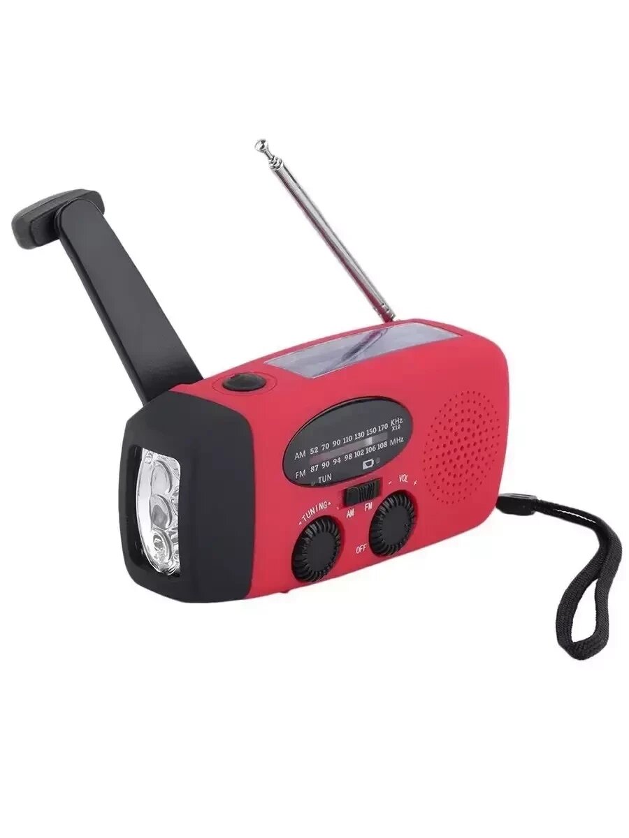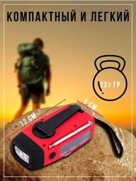 Фонарь динамо GVD с солнечной батареей и радио 2000 мАч / ручная зарядка для телефона / кемпинговый (красный)