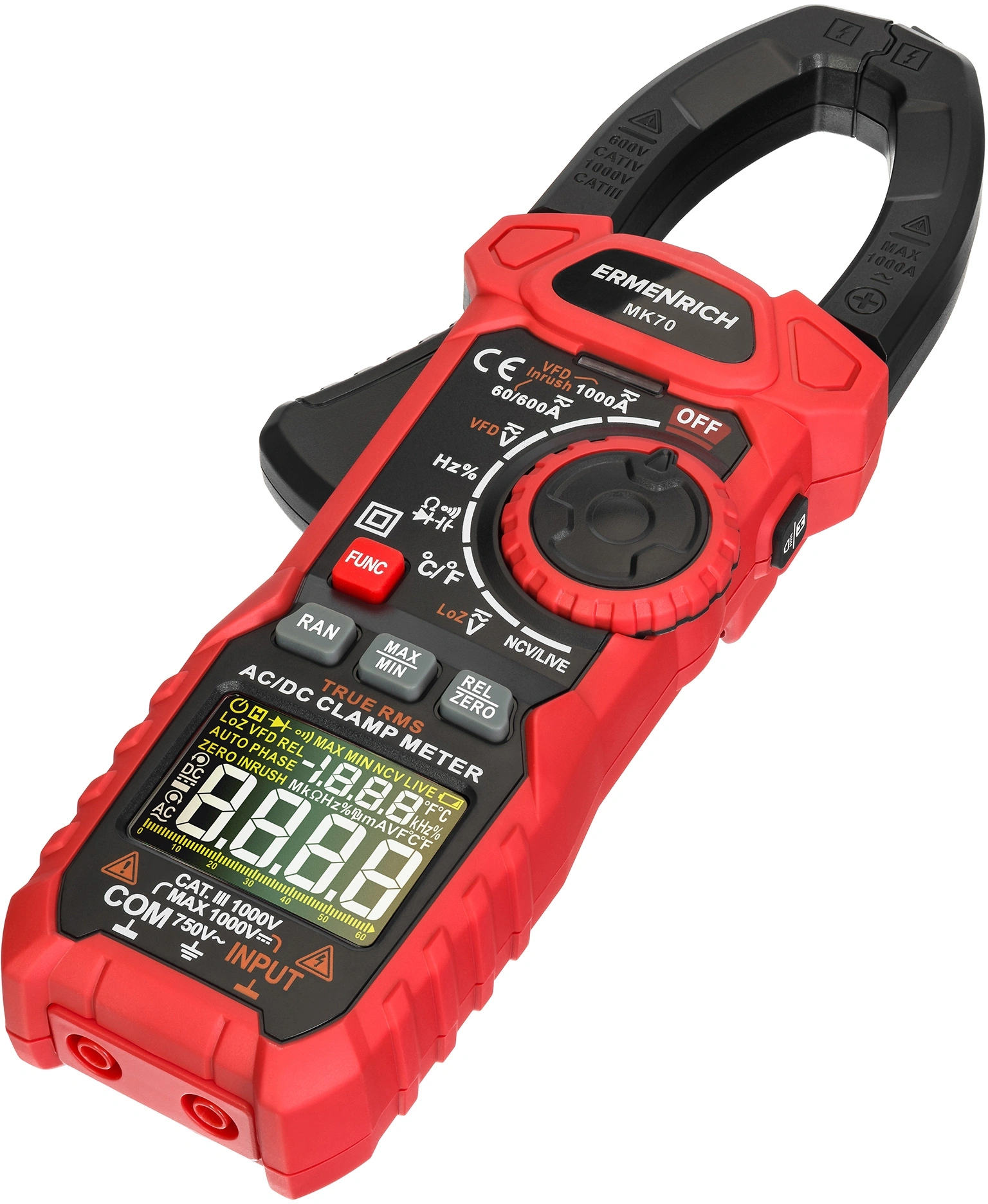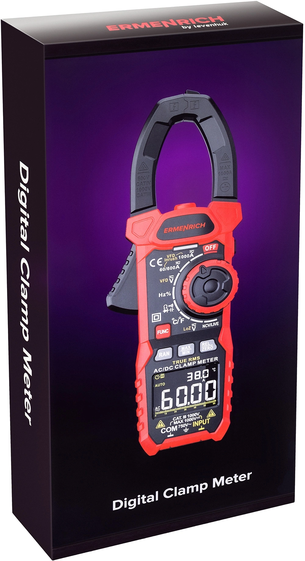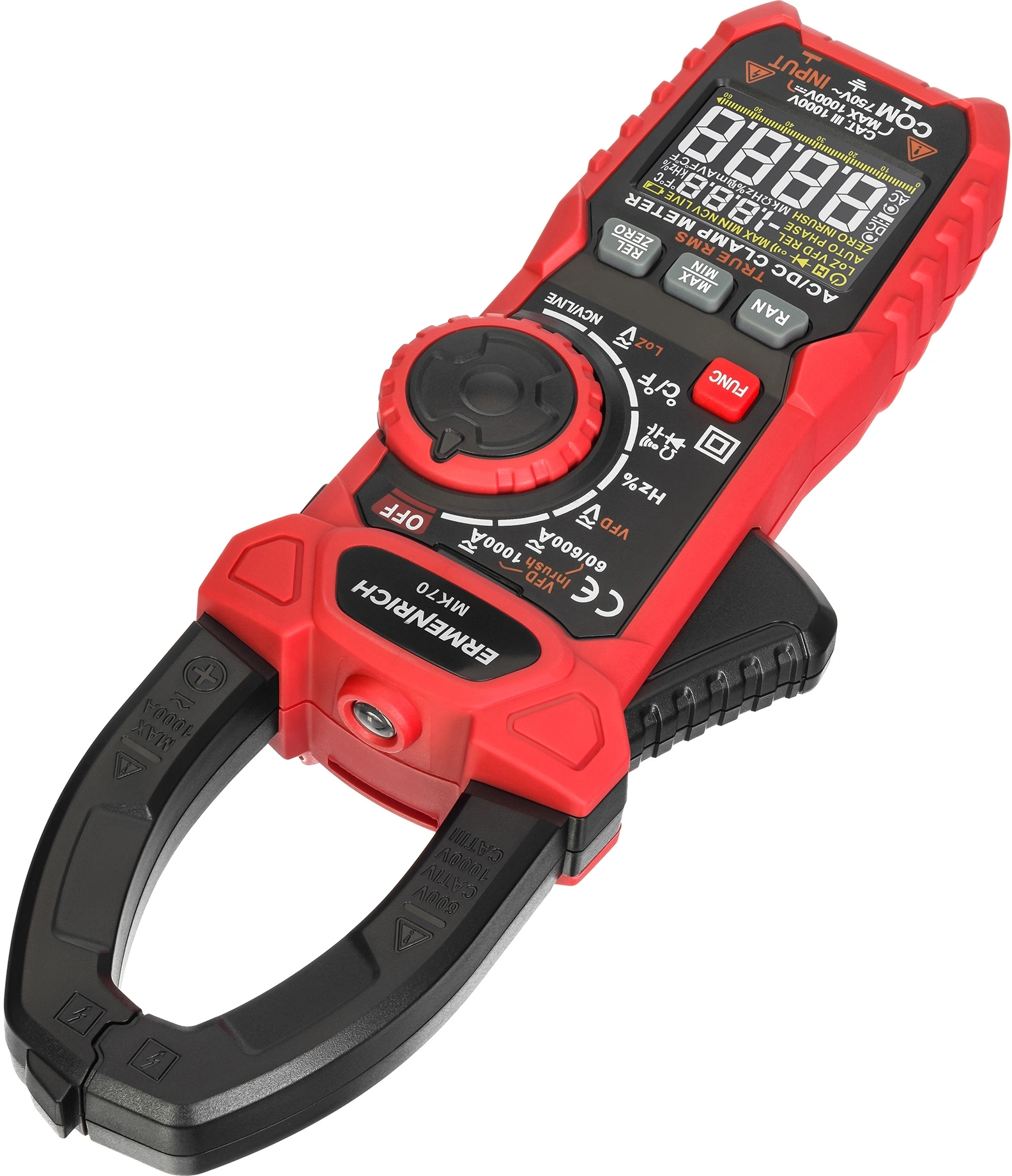 Режимы и тестыINRUSH (измерение пускового тока), NCV (бесконтактное детектирование напряжения), диод-тест, прозвонка, режим памяти (HOLD), функция True RMS