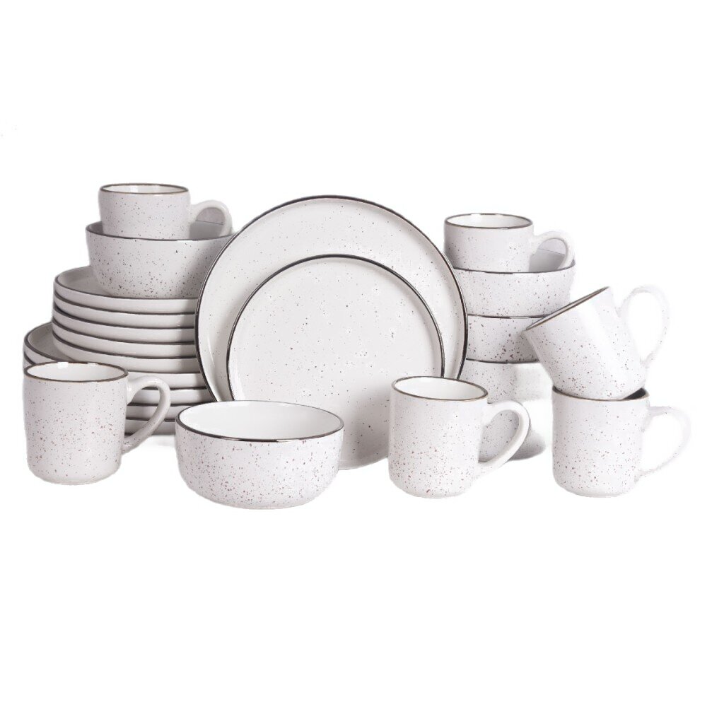 - В наборе тарелка столовая обеденная (6 шт.), тарелка закусочная (десертная) (6 шт.), кружка (6 шт.), салатник (6 шт.)