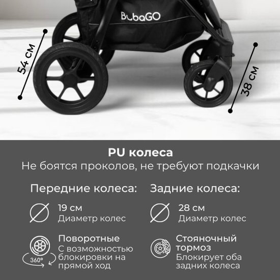 • Диаметр передних колес 19 см