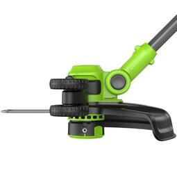 Аккумуляторный триммер Greenworks GD24LT331 — лёгкий и мощный аккумуляторный триммер, идеально подходящий для ухода за газоном на приусадебном участке, даче или вокруг дома. Работает от аккумуляторов платформы Greenworks 24V, не нуждается в бензине или розетке — вы получаете свободу передвижения и чистую, экологичную работу без выхлопа и шума. Модель сочетает в себе сразу два инструмента: триммер и кромкорез. В комплекте предусмотрены не только катушка с леской, но и набор из 20 пластиковых ножей, которые легко справляются с травой средней густоты. Эргономичная конструкция, регулируемый угол наклона режущей части, двухскоростной режим, бесщёточный двигатель DigiPro и продуманная развесовка делают этот инструмент отличным выбором как для новичков, так и для опытных пользователей.