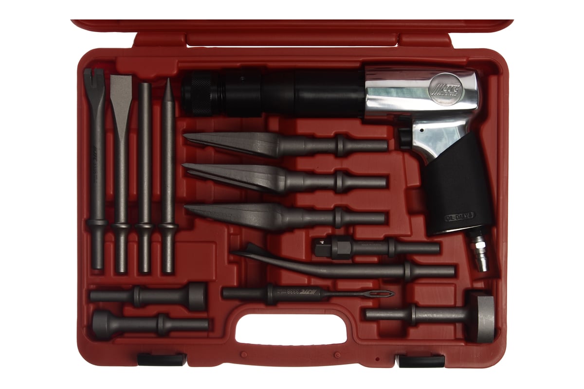 - Комплект поставки Пневмомолоток Набор зубил Кейс
