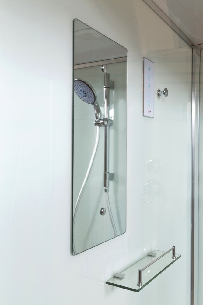 Стильная душевая кабина AvaCan D80S с электрикой сочетает в себе высокую функциональность, практичность и надежность. Для изготовления применяют безопасное закаленное стекло толщиной 4 мм, надежно фиксируемое алюминиевым профилем. Цвет профиля хром. В комплекте встроенное сидение, сифон, полочка, зеркало, сенсорный пульт управления, смеситель, переключатель режимов, передний съемный экран, донный клапан (клик-клак), душевой гарнитур, тропический (верхний) душ, вентиляция, радио.