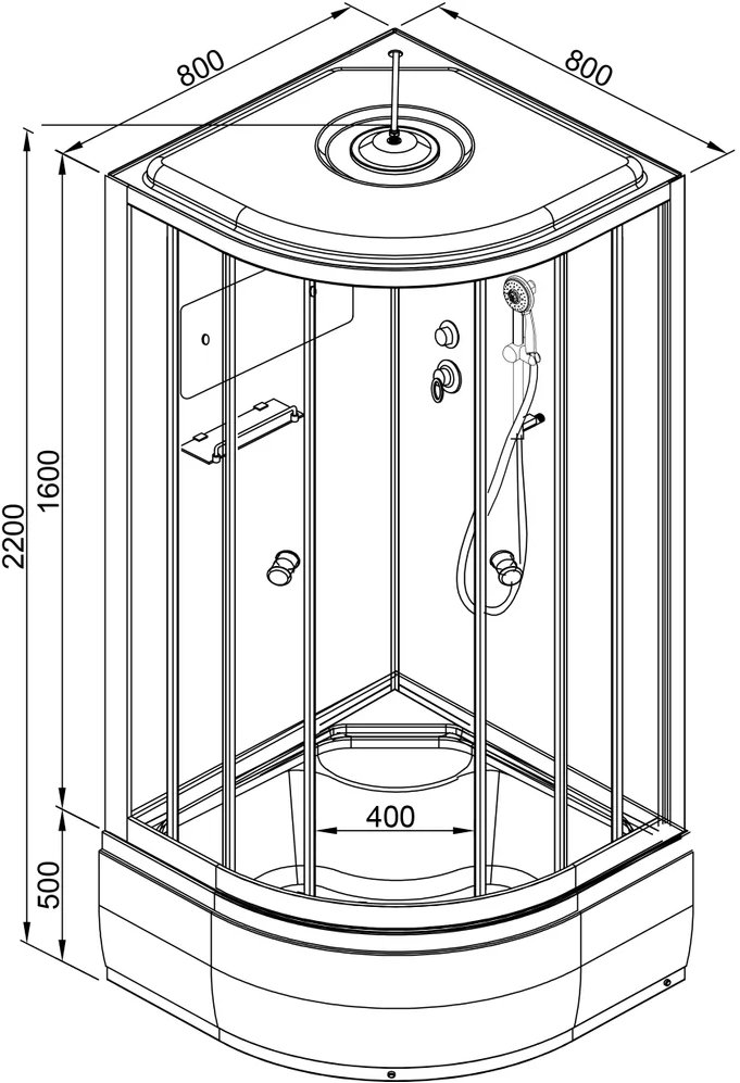 Размеры (Д.;Ш.;В.): 80x80х220 см