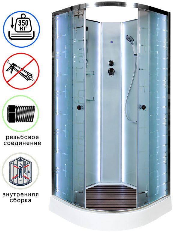 Душевая кабина Avacan EM1510NLED AVA N 100x100 без крыши с LED, стекла с узором, профиль хром