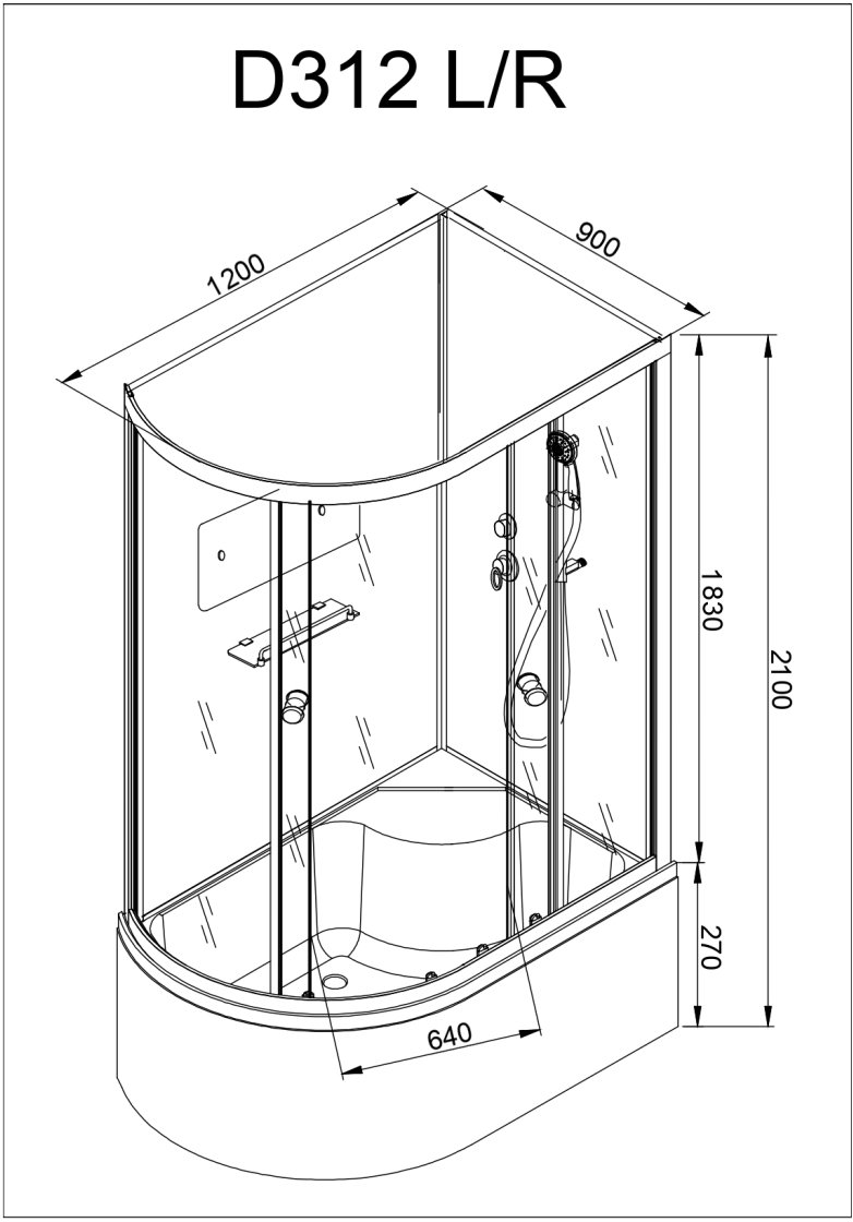 Стильная душевая кабина с внутренней сборкой AvaCan D312 L сочетает в себе высокую функциональность, практичность и надежность. Для изготовления применяют безопасное закаленное стекло толщиной 4 мм, надежно фиксируемое алюминиевым профилем. Цвет профиля хром. В комплекте сифон, полочка, зеркало, смеситель, переключатель режимов, передний съемный экран, душевой гарнитур.