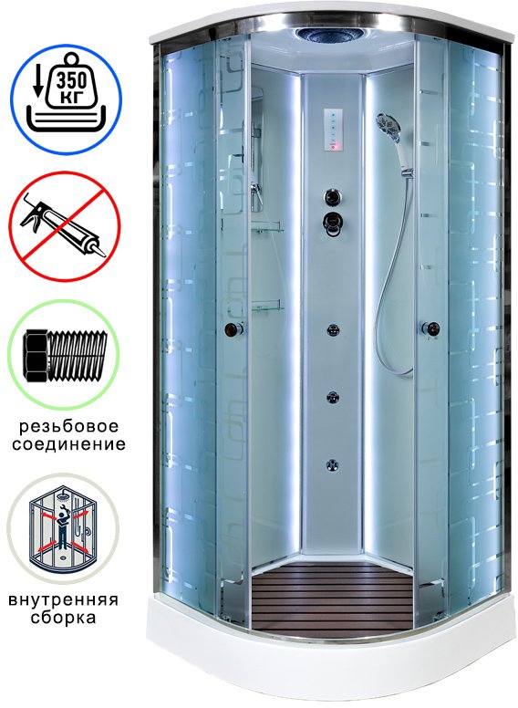 Душевая кабина Avacan EM1510LED+GM AVA с LED 100x100 и гидромассажем, стекла с узором, профиль хром