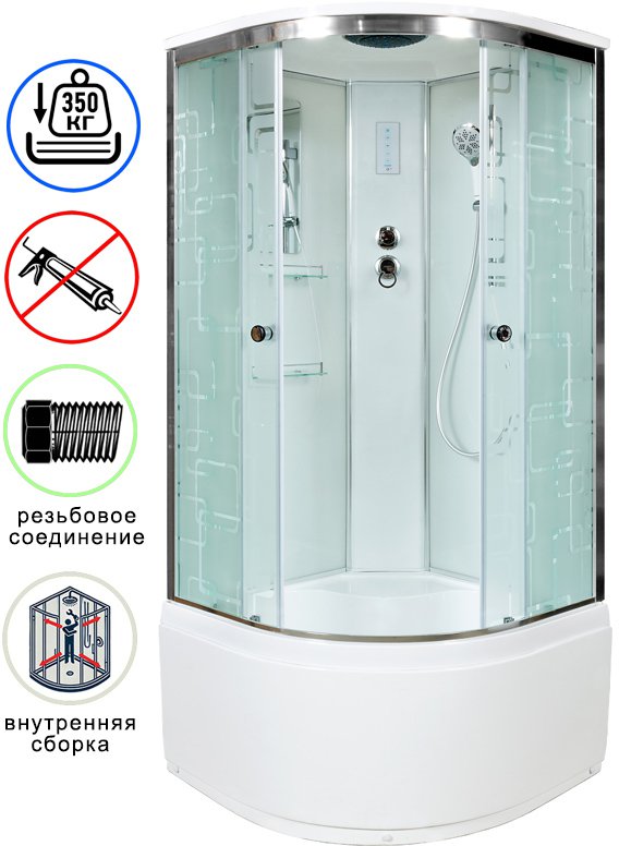 Душевая кабина Avacan EM4590EL AVA N 90x90 с электрикой, стекла с узором, профиль хром