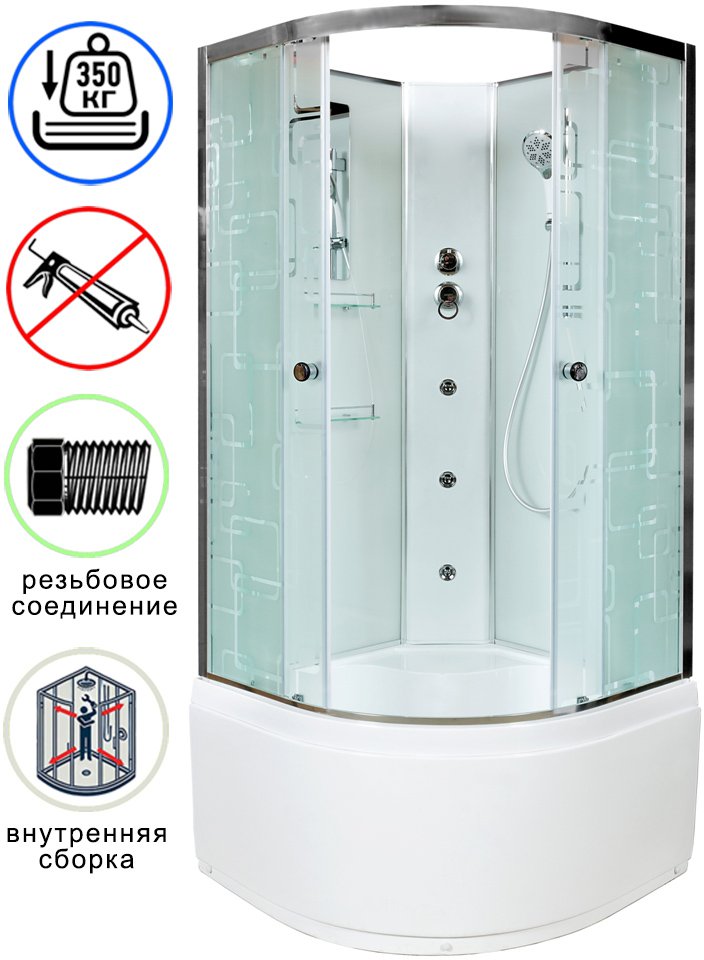 Душевая кабина Avacan EM4580NGM AVA N 80x80 б/к, с гидромассажем, стекла с узором, профиль хром
