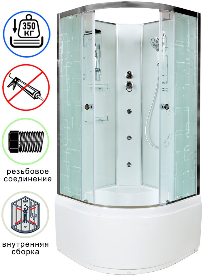 душевая кабина avacan em4510ngm ava 100x100 б/к с гидромассажем, стекла с узором, профиль хром
