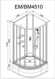 Стильная душевая кабина с внутренней сборкой AvaCan EM 4510 N с гидромассажем сочетает в себе высокую функциональность, практичность и надежность. Для изготовления применяют безопасное закаленное стекло толщиной 5 мм, надежно фиксируемое алюминиевым профилем. Цвет профиля хром. В комплекте зеркало, донный клапан (клик-клак), смеситель,переключатель режимов, полочки, гидромассажные форсунки.