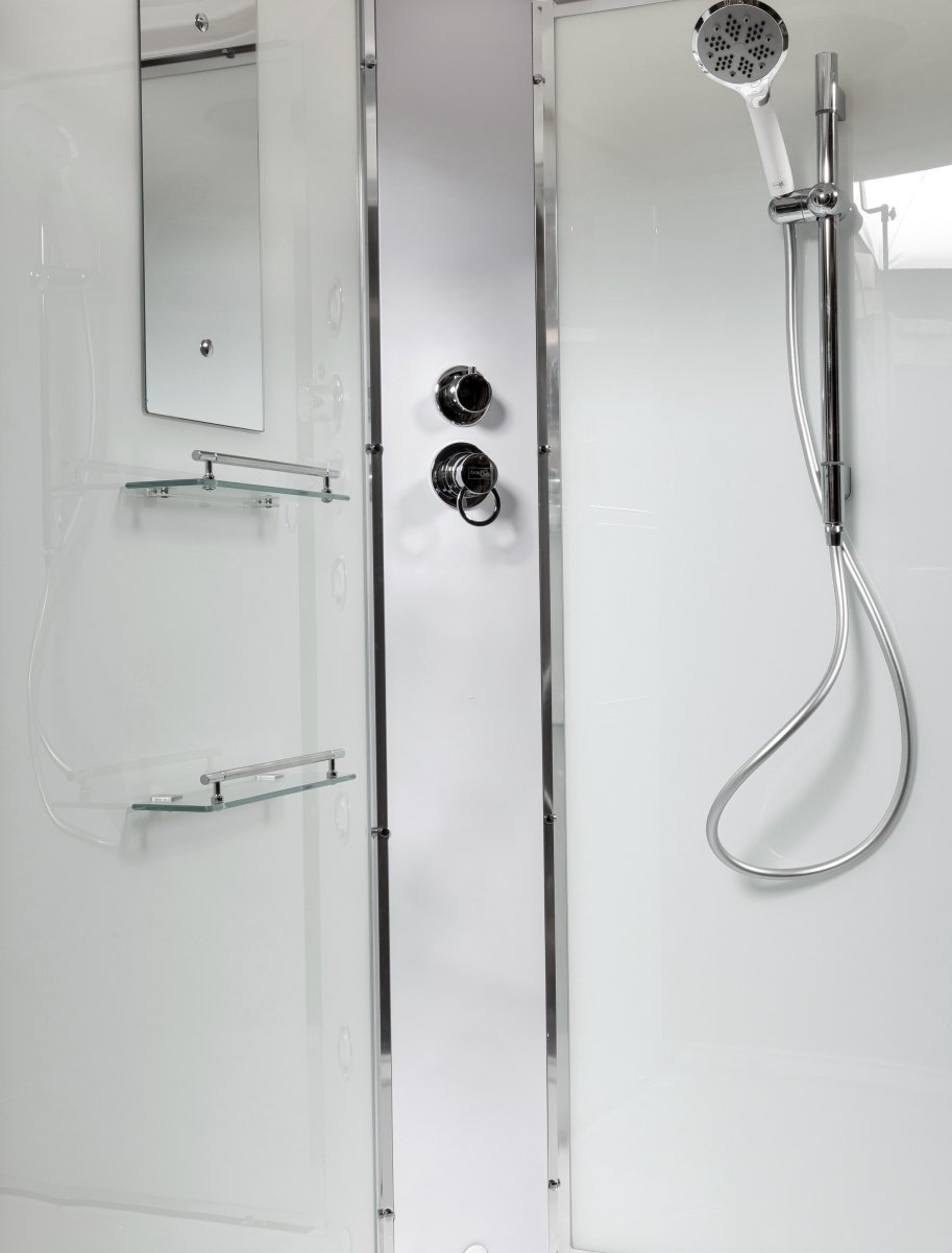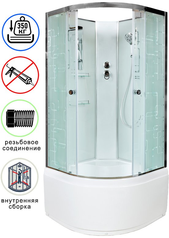 Стильная душевая кабина с внутренней сборкой AvaCan EM 4590 N сочетает в себе высокую функциональность, практичность и надежность. Для изготовления применяют безопасное закаленное стекло толщиной 5 мм, надежно фиксируемое алюминиевым профилем. Цвет профиля белый. В комплекте зеркало, душевой гарнитур, переключатель режимов, смеситель, полочки.